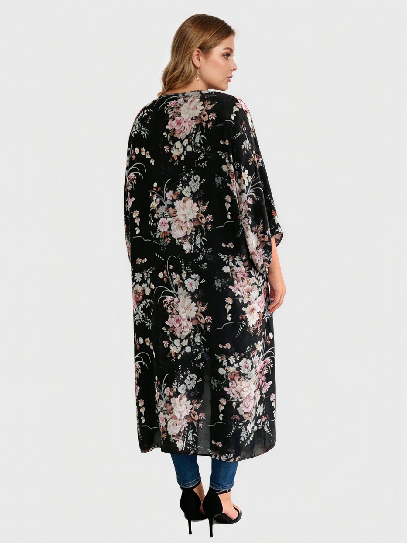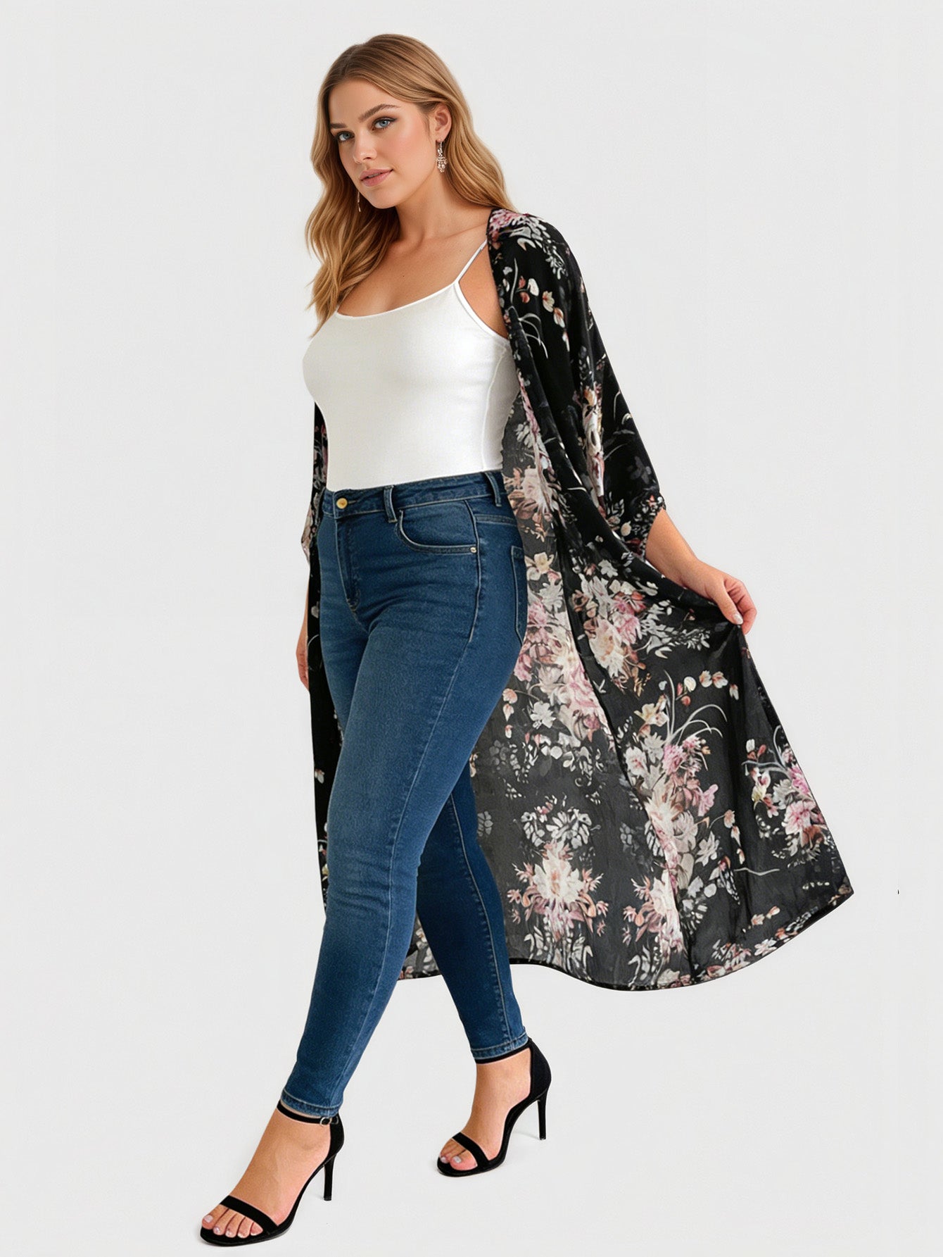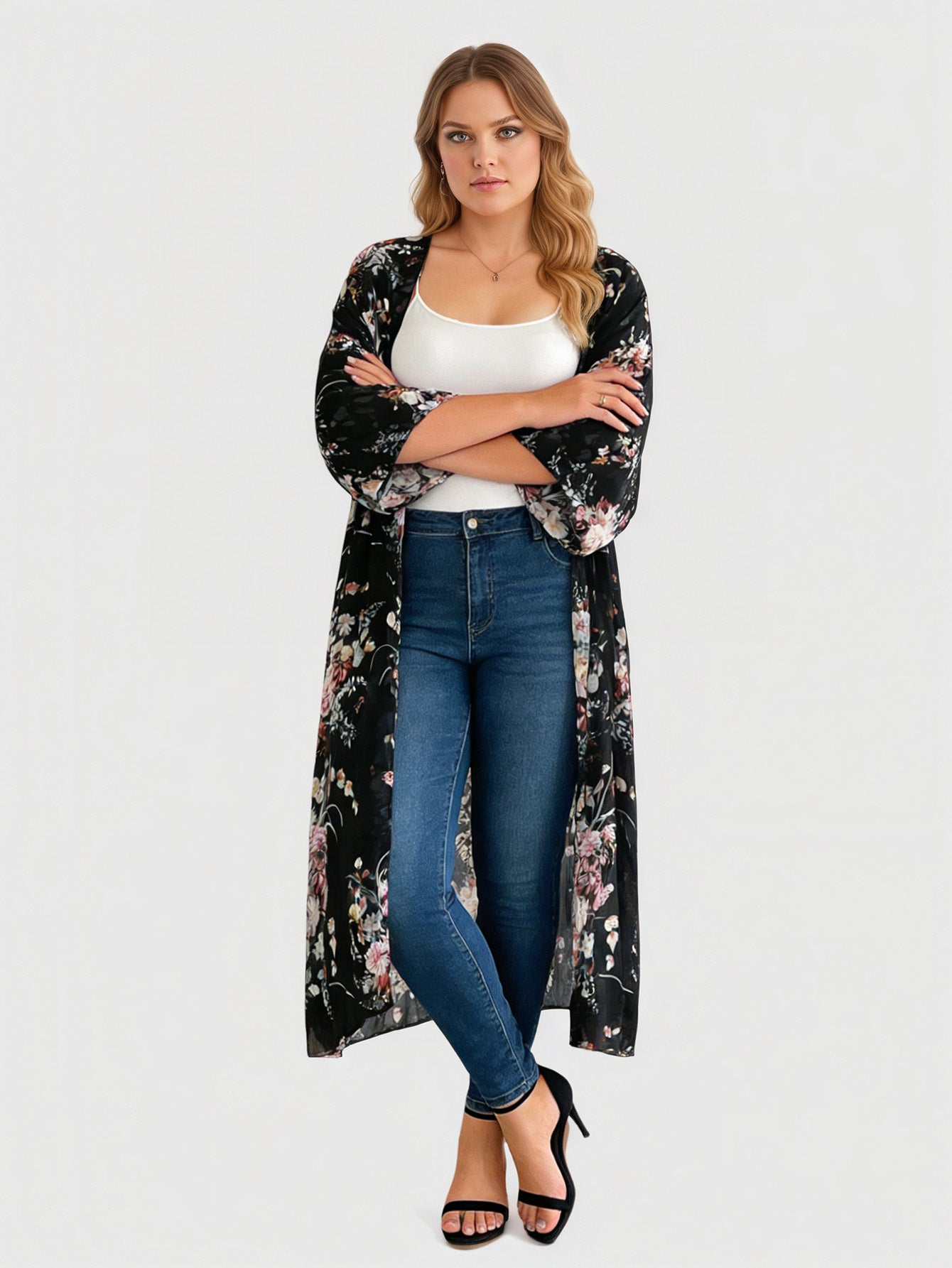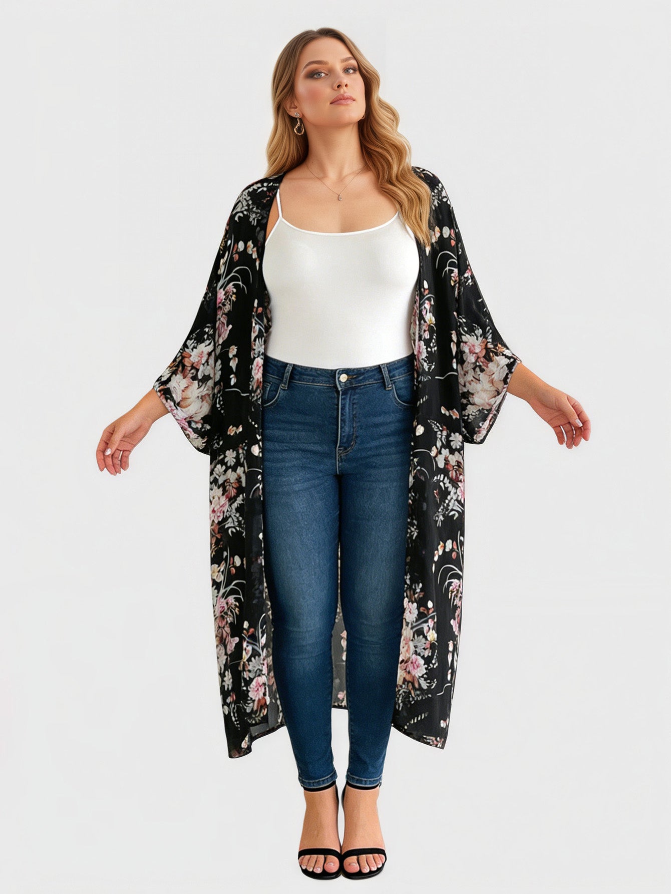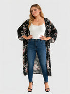 Yeese Plus Size Women's Chiffon Print Vacation Casual Cardigan