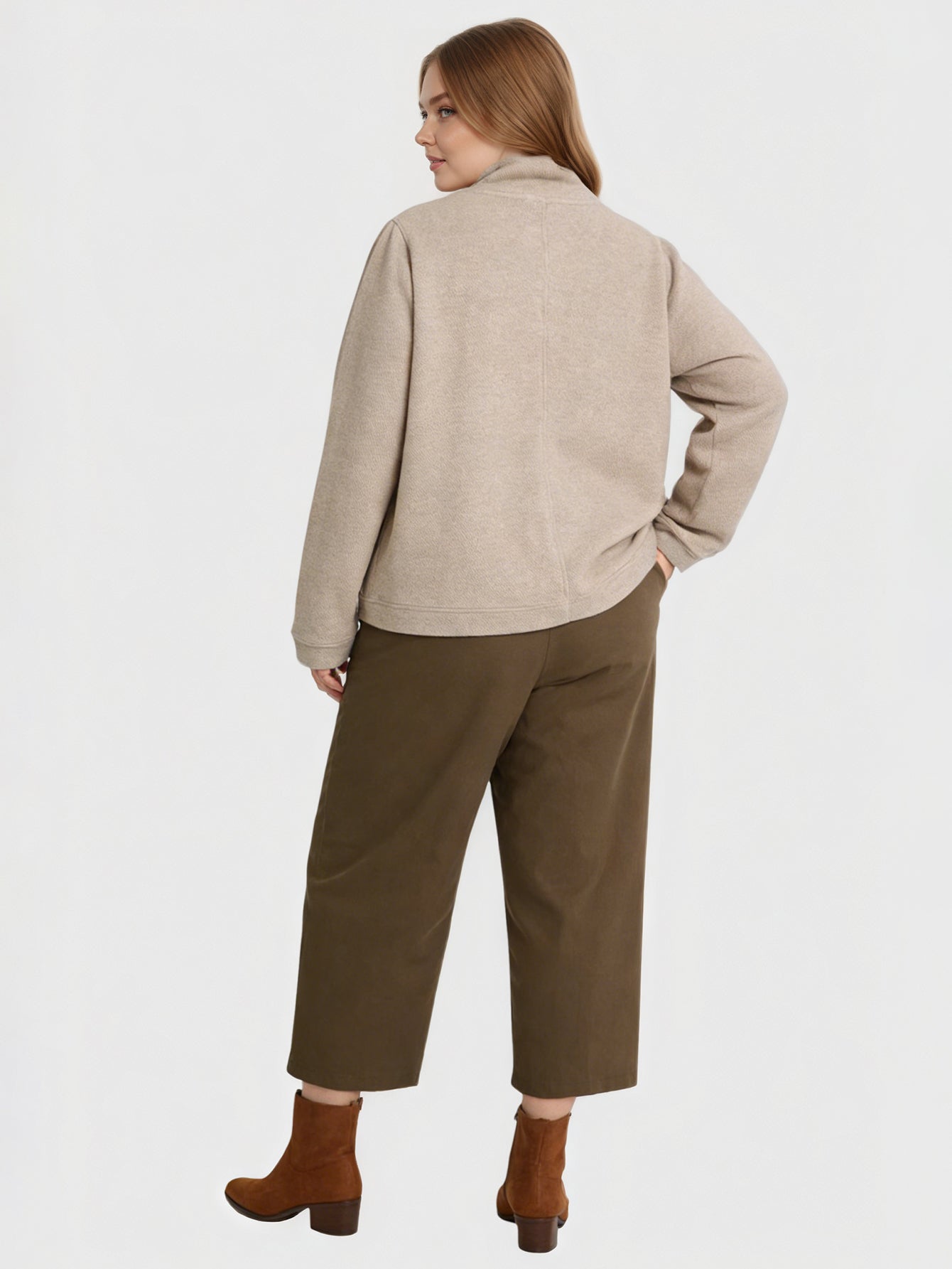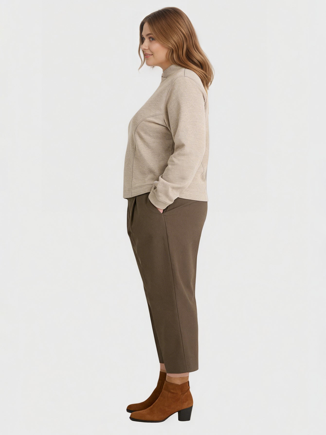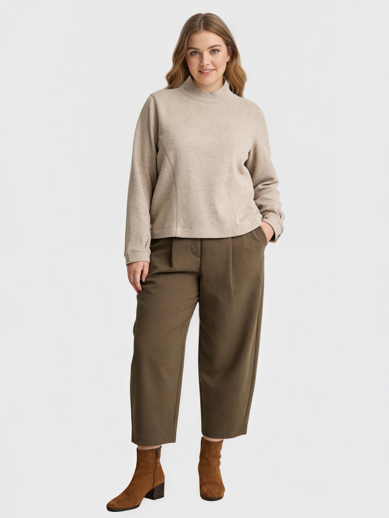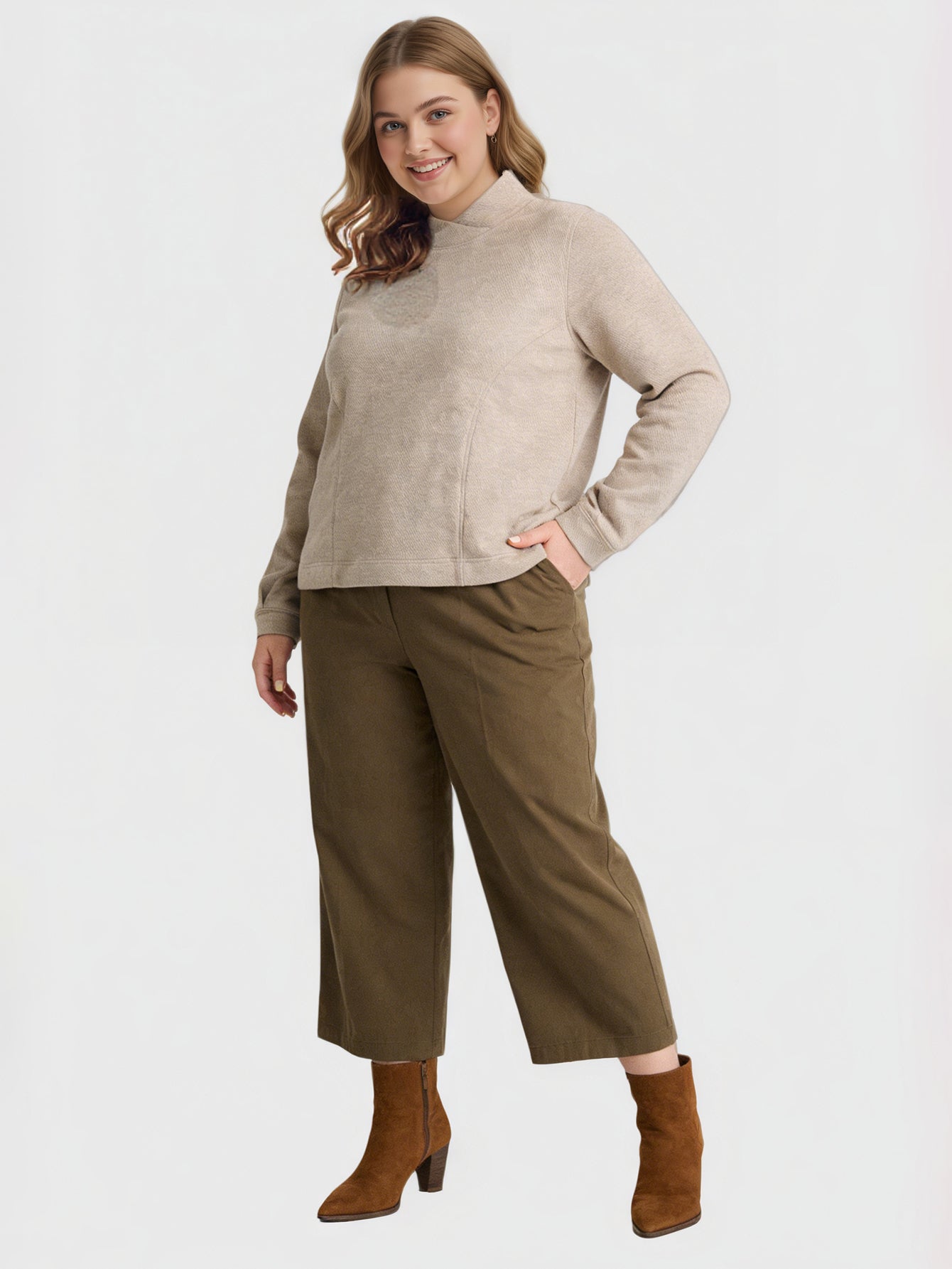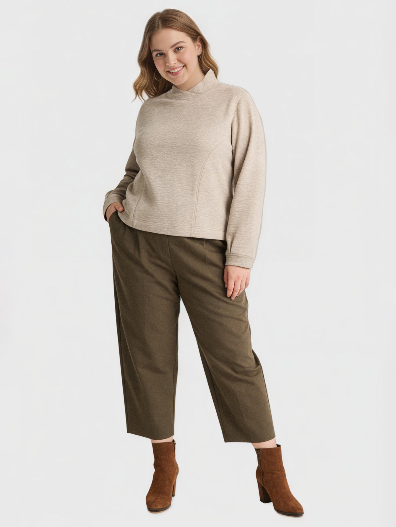 This mock neck top blends polyester and wool for warmth and elegance, perfect for daily wear with long sleeves for added comfort.