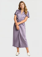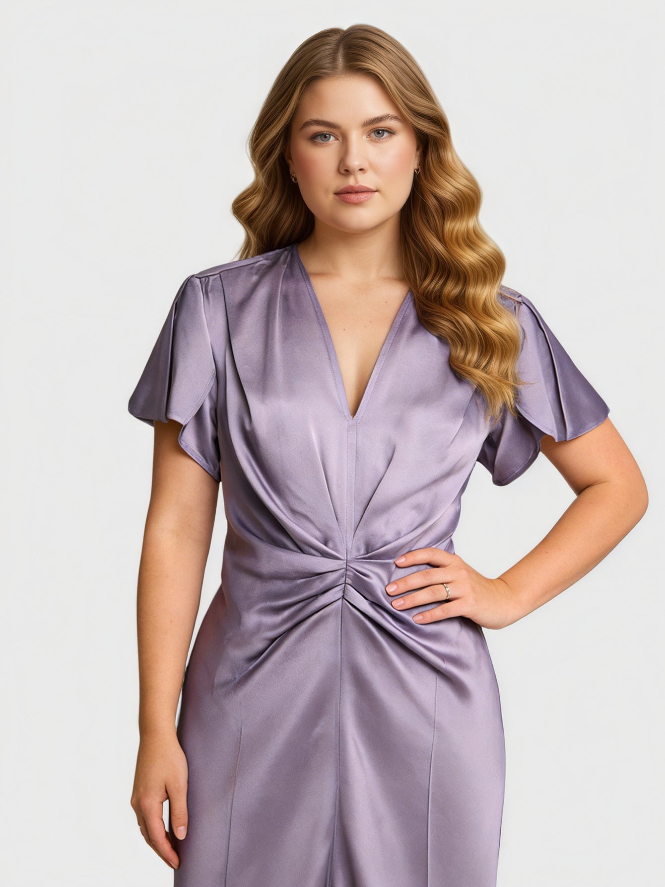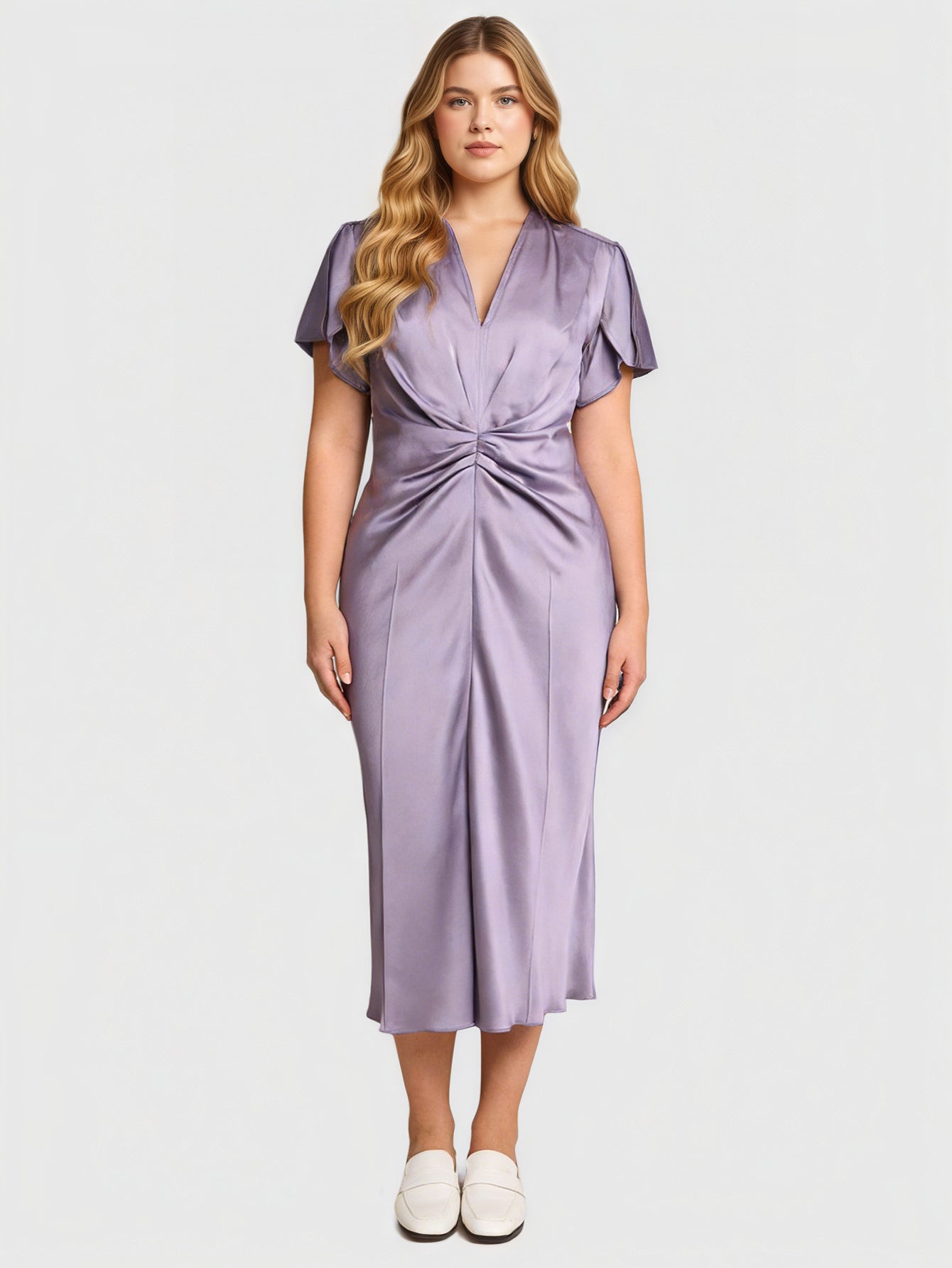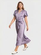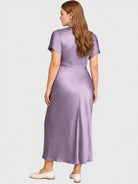 Yeese Plus Size Women's Satin Pleated Dress