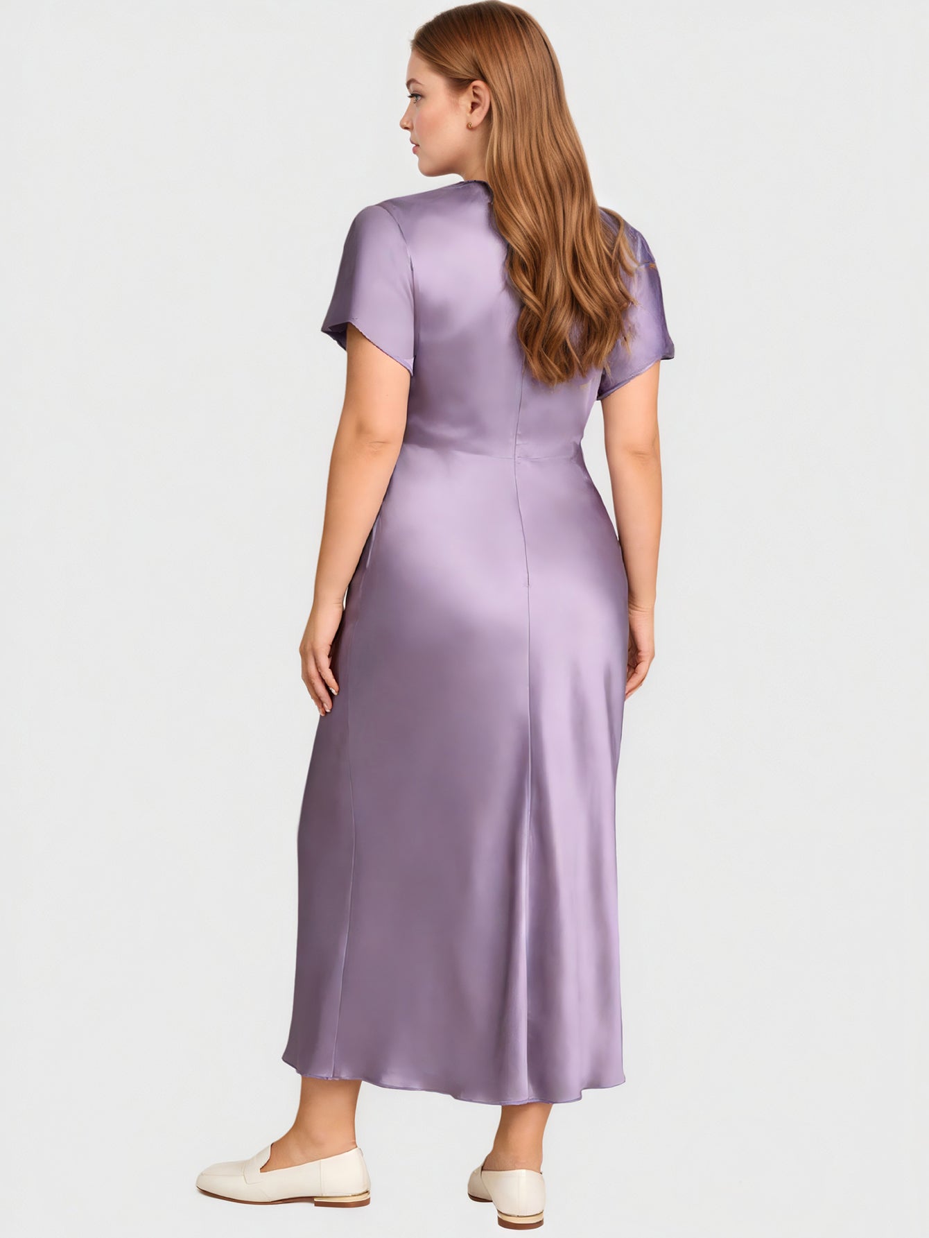 Elevate your style with the Yeese Plus Size Satin Pleated Dress. Crafted from luxurious polyester and elastane, this midi dress features graceful pleats that flatter your silhouette, while the smooth satin fabric adds a touch of elegance. The classic round neckline and short sleeves create a timeless, feminine look, perfect for cocktail parties or special events.