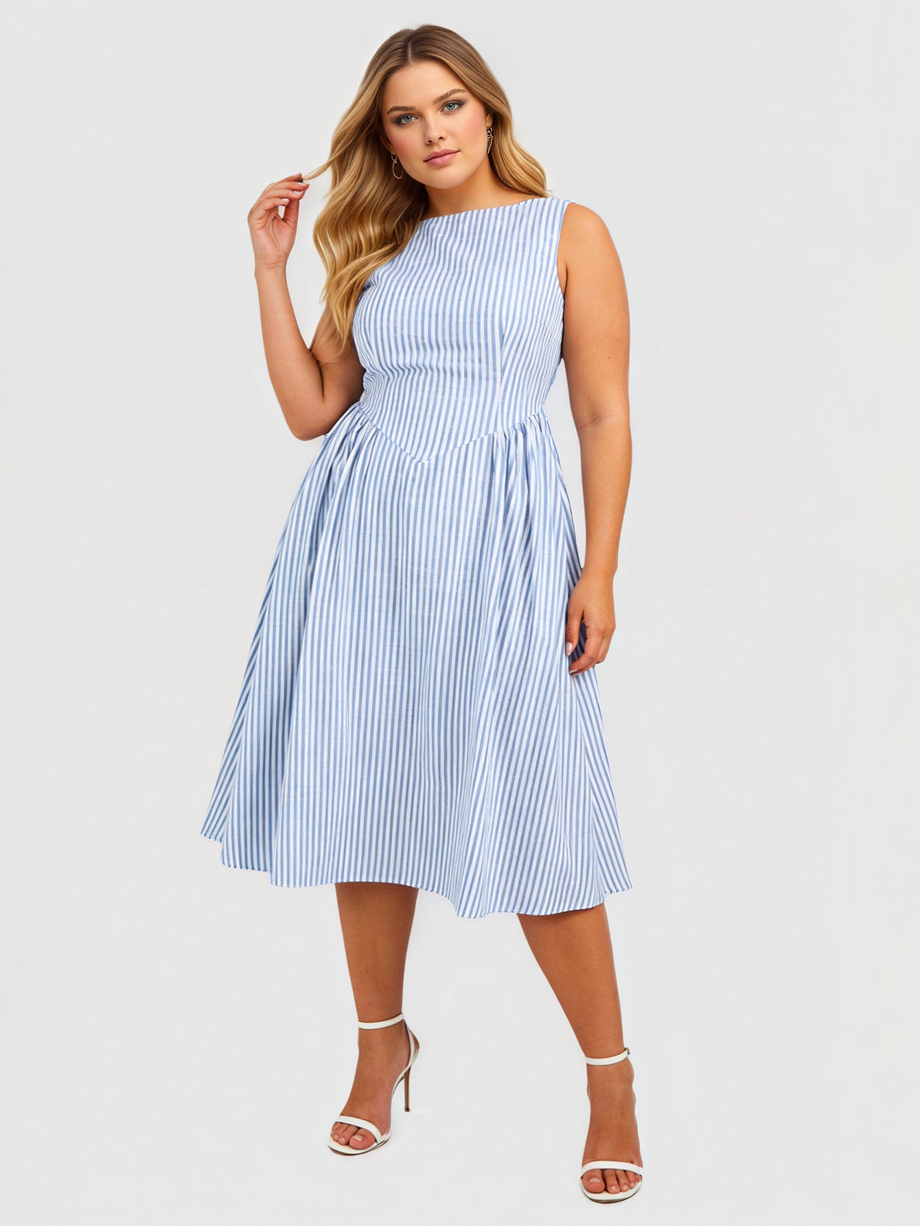 Yeese Plus Size Women's Solid Crew Neck Sleeveless Dress