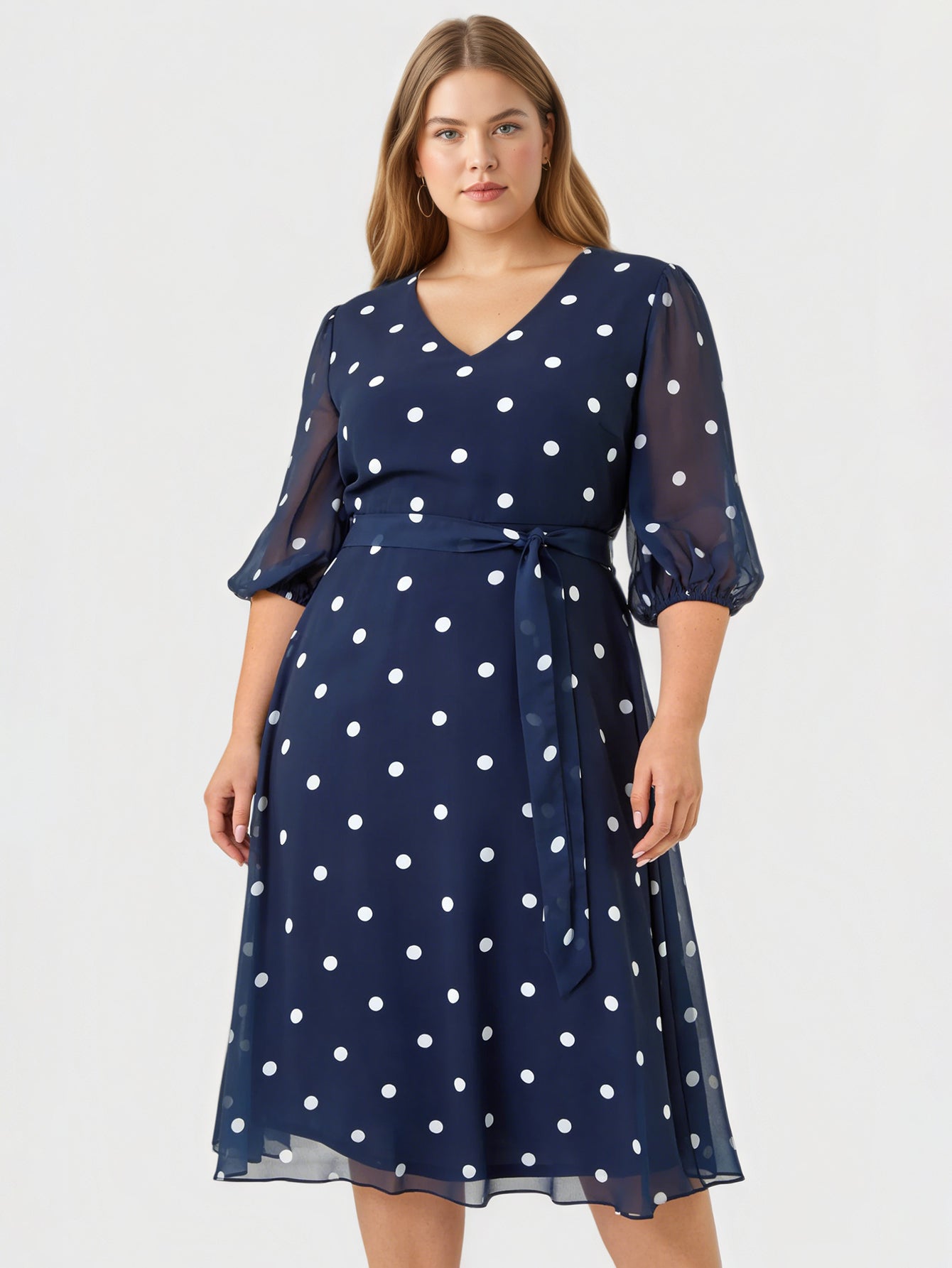 Yeese Plus Size Women's Polka Dot Chiffon Dress