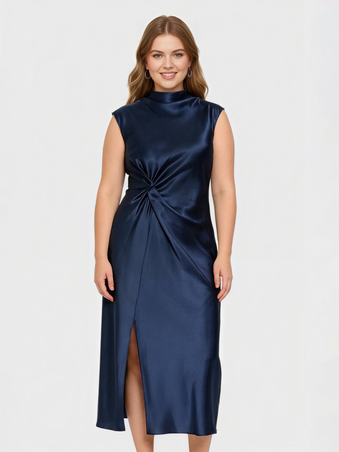 Yeese Plus Size Women's Satin Slit Dress