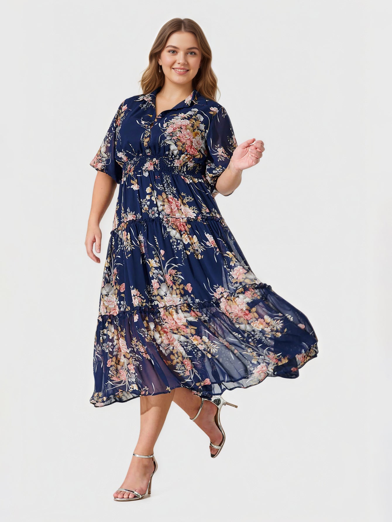 Yeese Plus Size Women's Chiffon Printed Dress
