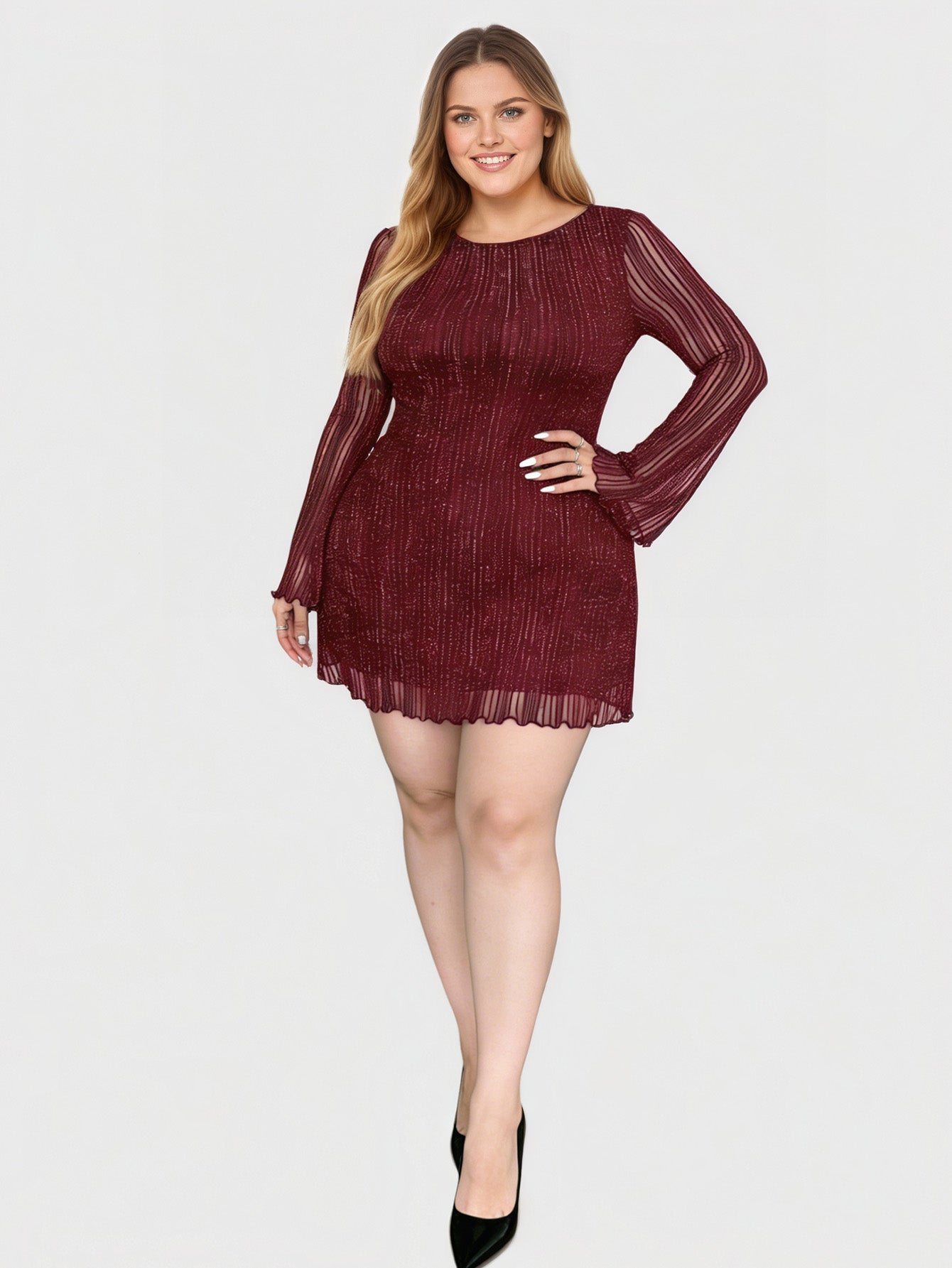 Yeese Plus Size Women's Shiny Silver Mesh Slim Fit Cocktail Dress