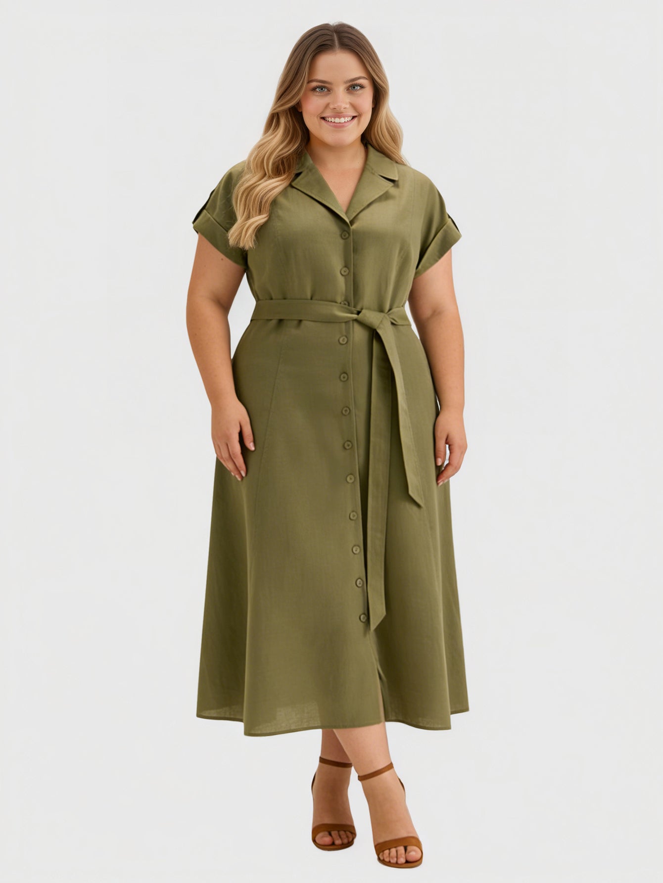 Yeese Wovem's Plus Daily Casual Solid Dress with Waist Belt