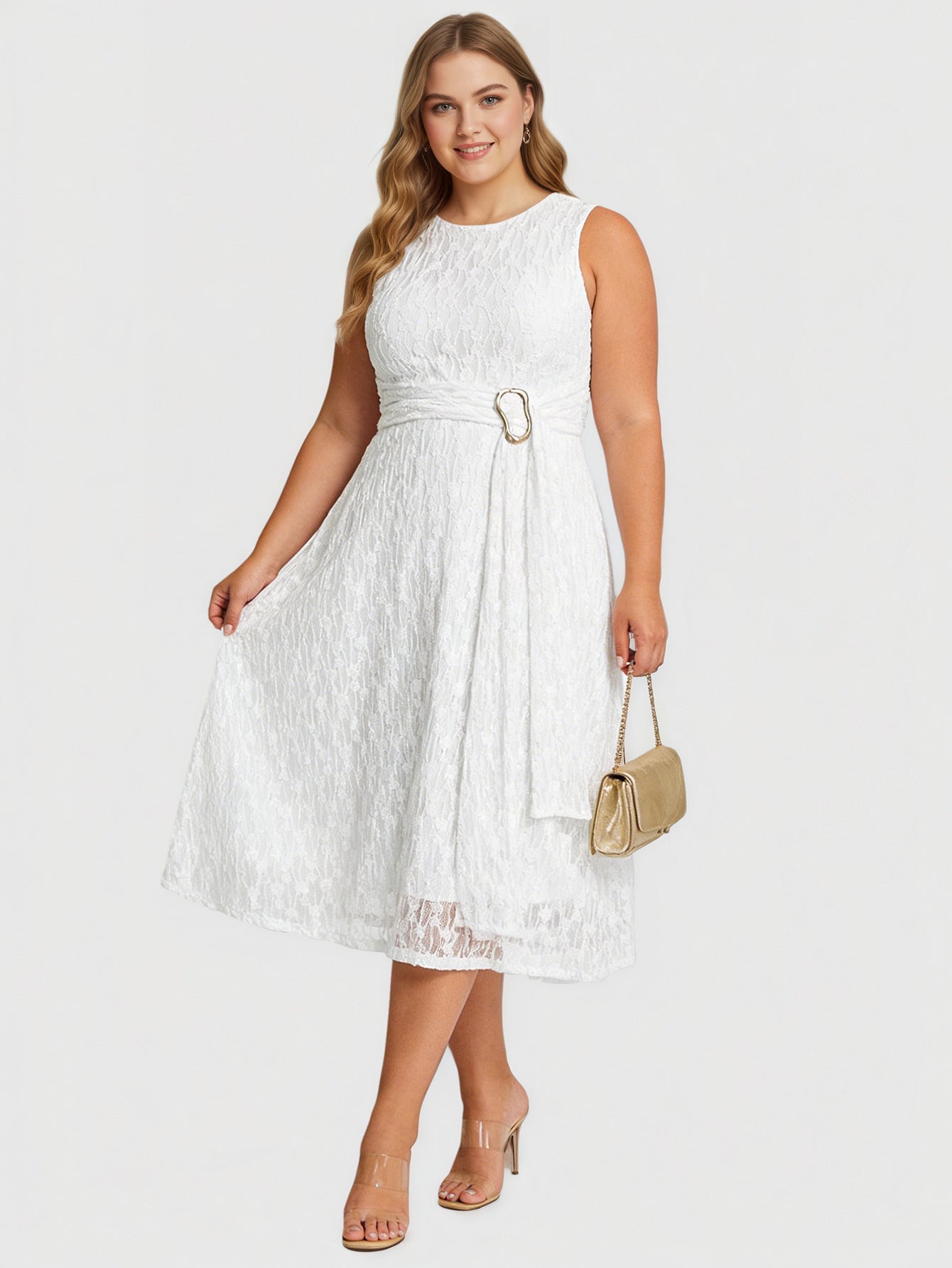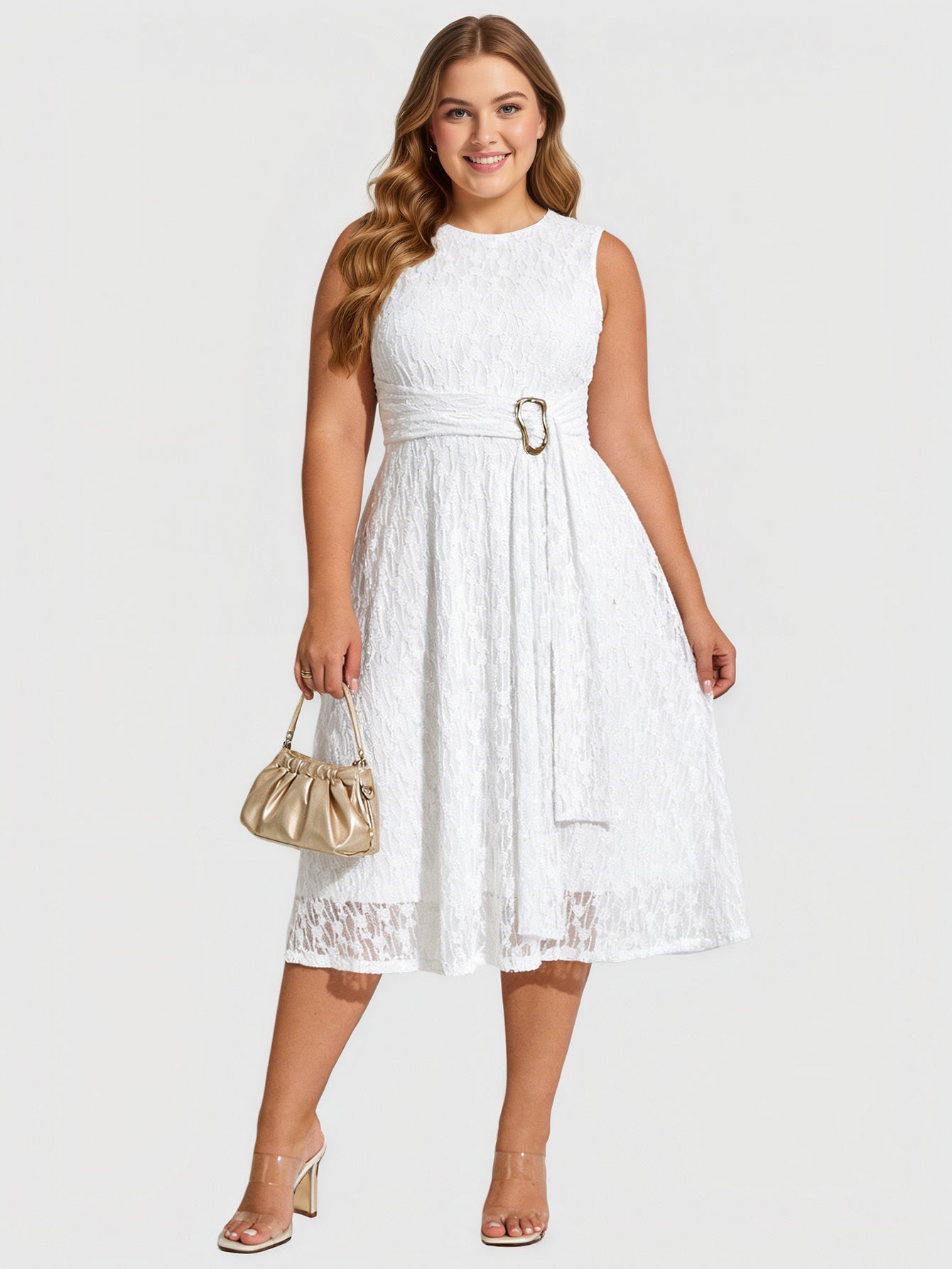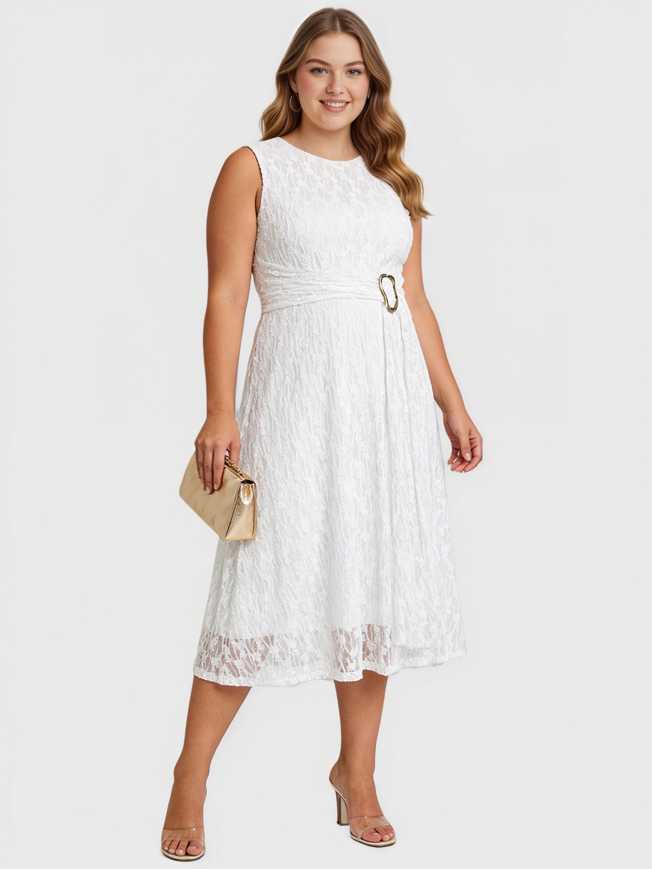 Yeese Plus Size Women's Dress With Gold Ring Buckle Design
