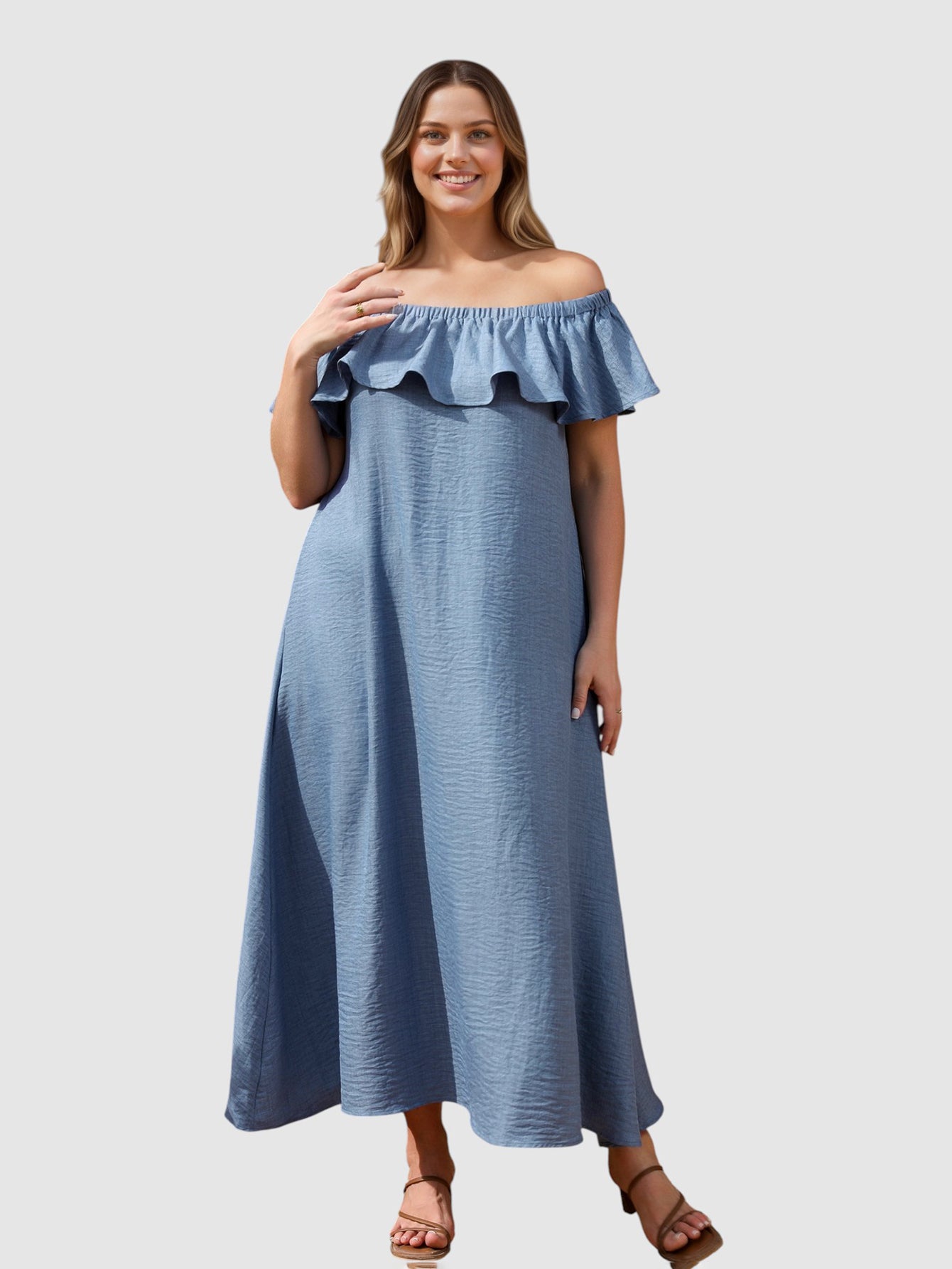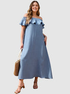 Yeese Wovem's Plus Size Off Shoulder Ruffle Pocket Vacation Maxi Dress