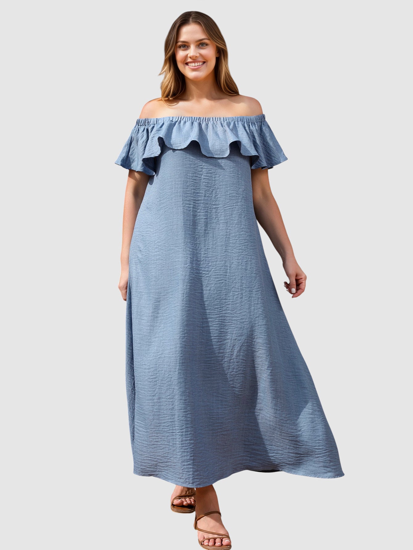 The Yeese Plus Size Off Shoulder Maxi Dress captures effortless vacation style with a flowing silhouette. Crafted from lightweight polyester, it drapes naturally for breezy, comfortable wear.