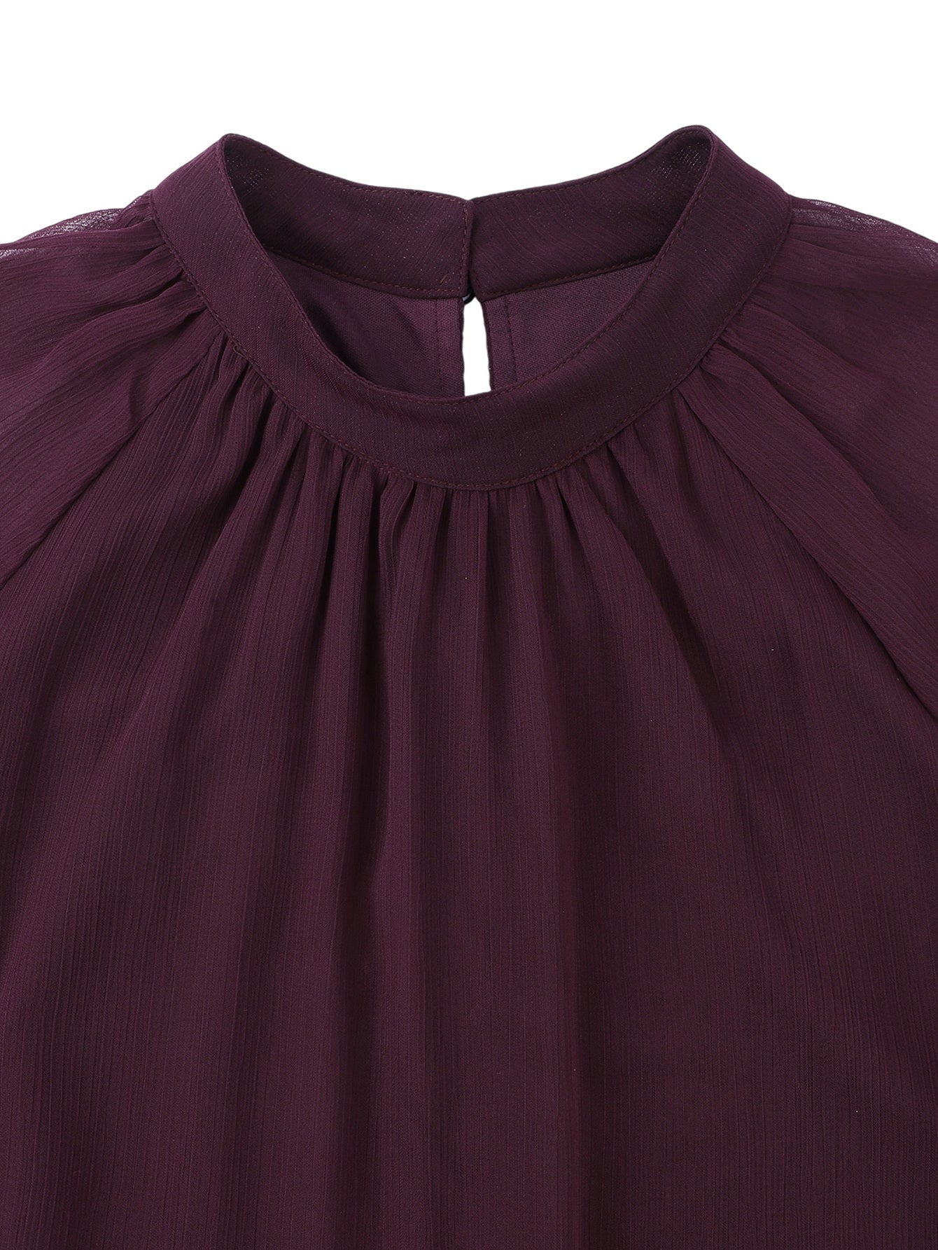 This elegant long-sleeve chiffon dress is a perfect blend of timeless sophistication and everyday comfort. The soft polyester fabric flows beautifully, while delicate ruffles along the hem and sleeves add a touch of feminine charm.