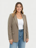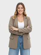 Made from structured polyester, this Yeese plus size blazer delivers a smooth, polished feel designed for confident, professional wear.