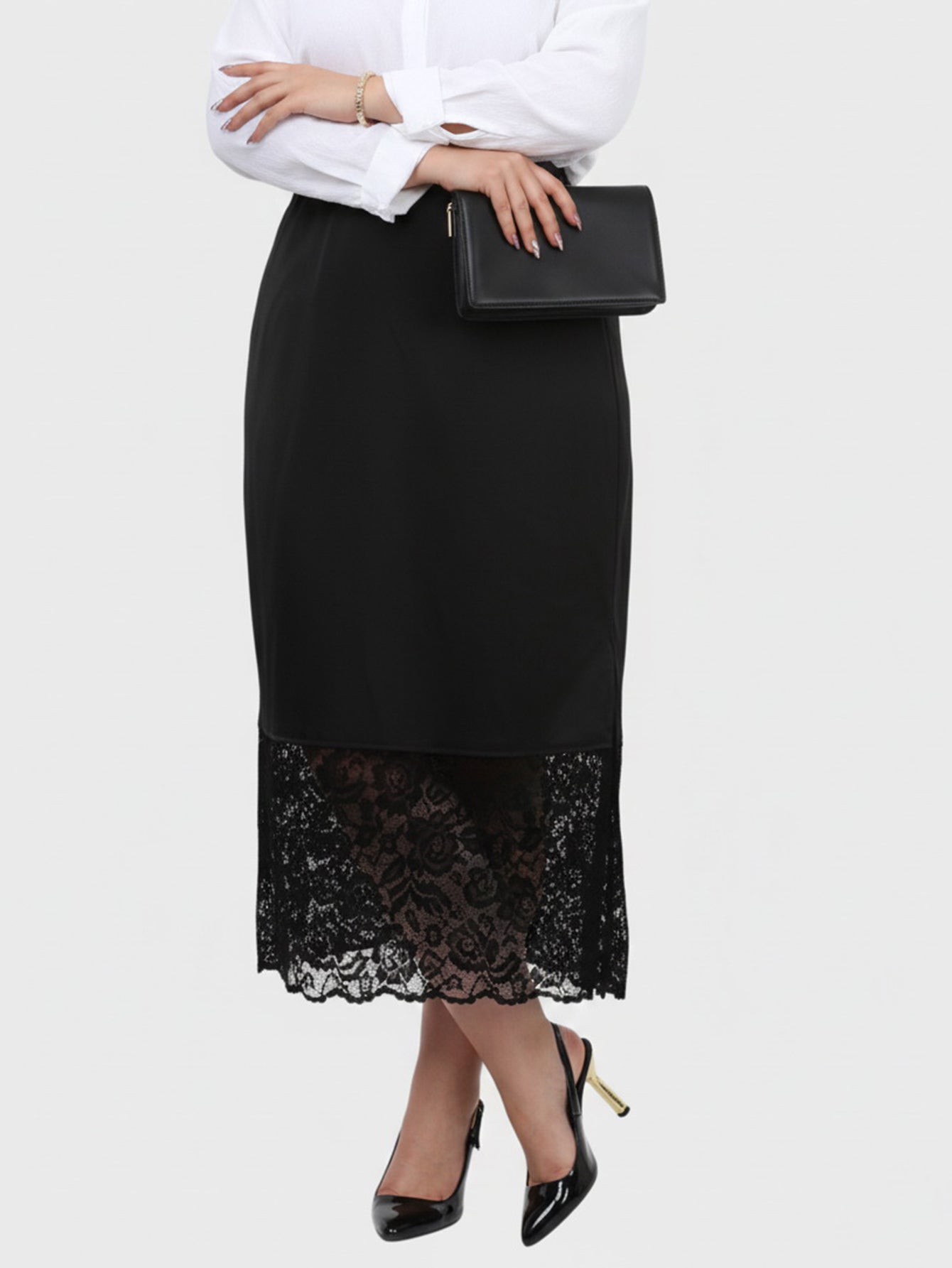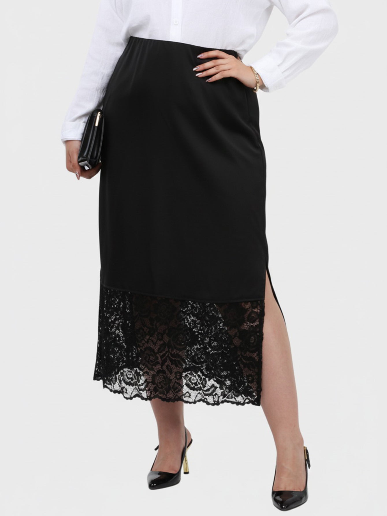 Yeese Plus Size Women's Elegant Satin Patchwork Sequin Lace Fashion Mini Skirt