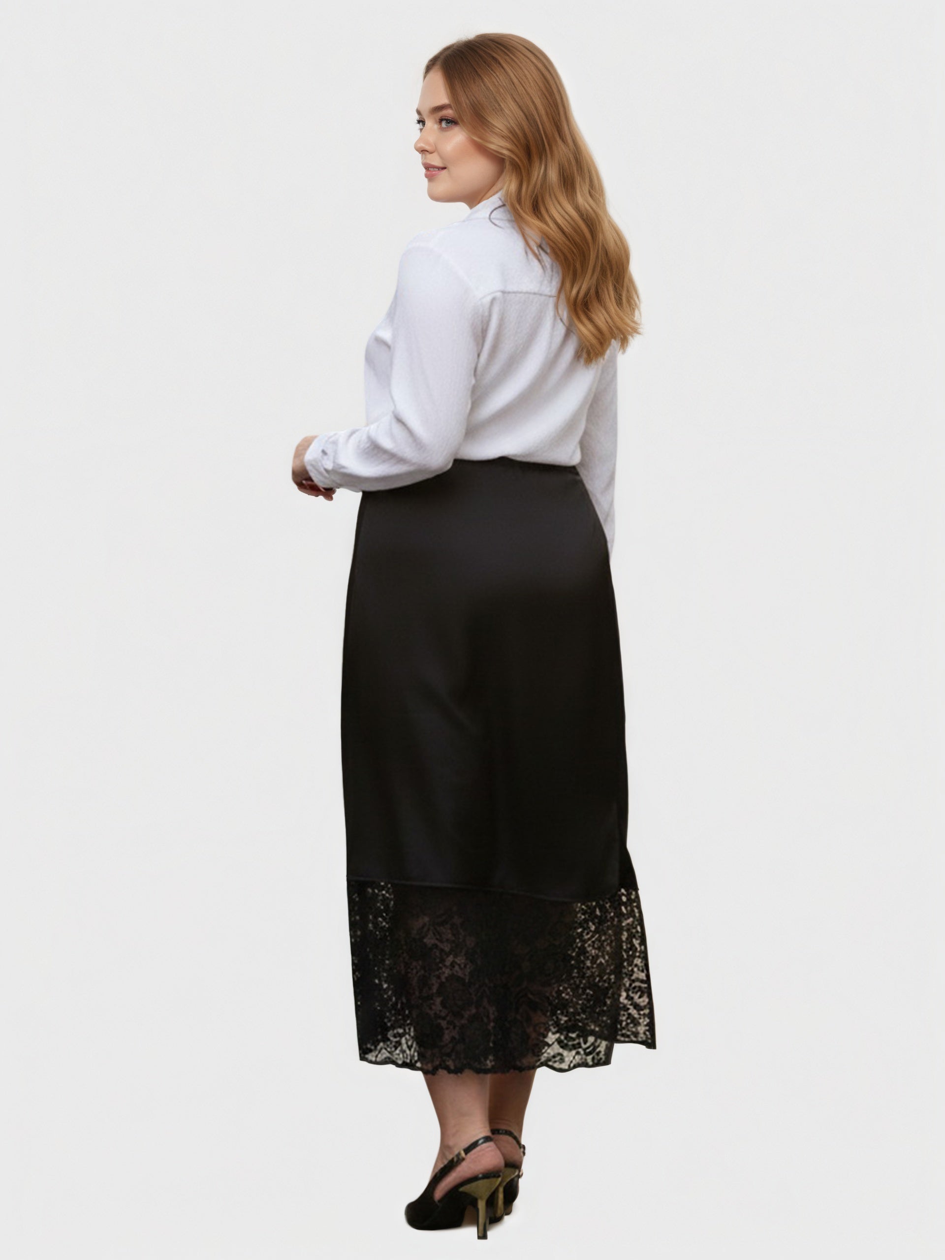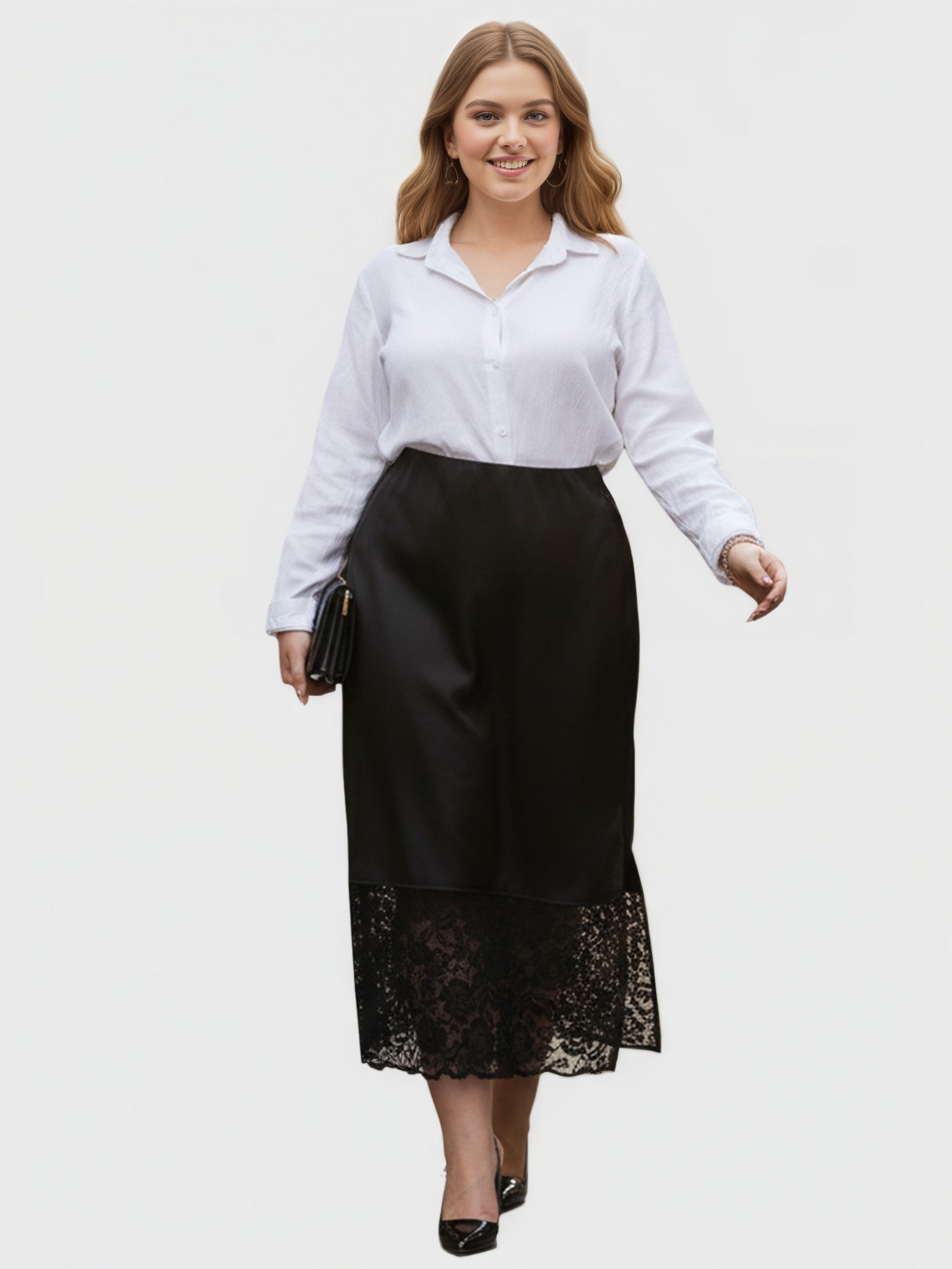 Crafted from smooth polyester with a satin-inspired finish, this Yeese plus size skirt delivers a refined sheen and elegant drape for elevated occasions.