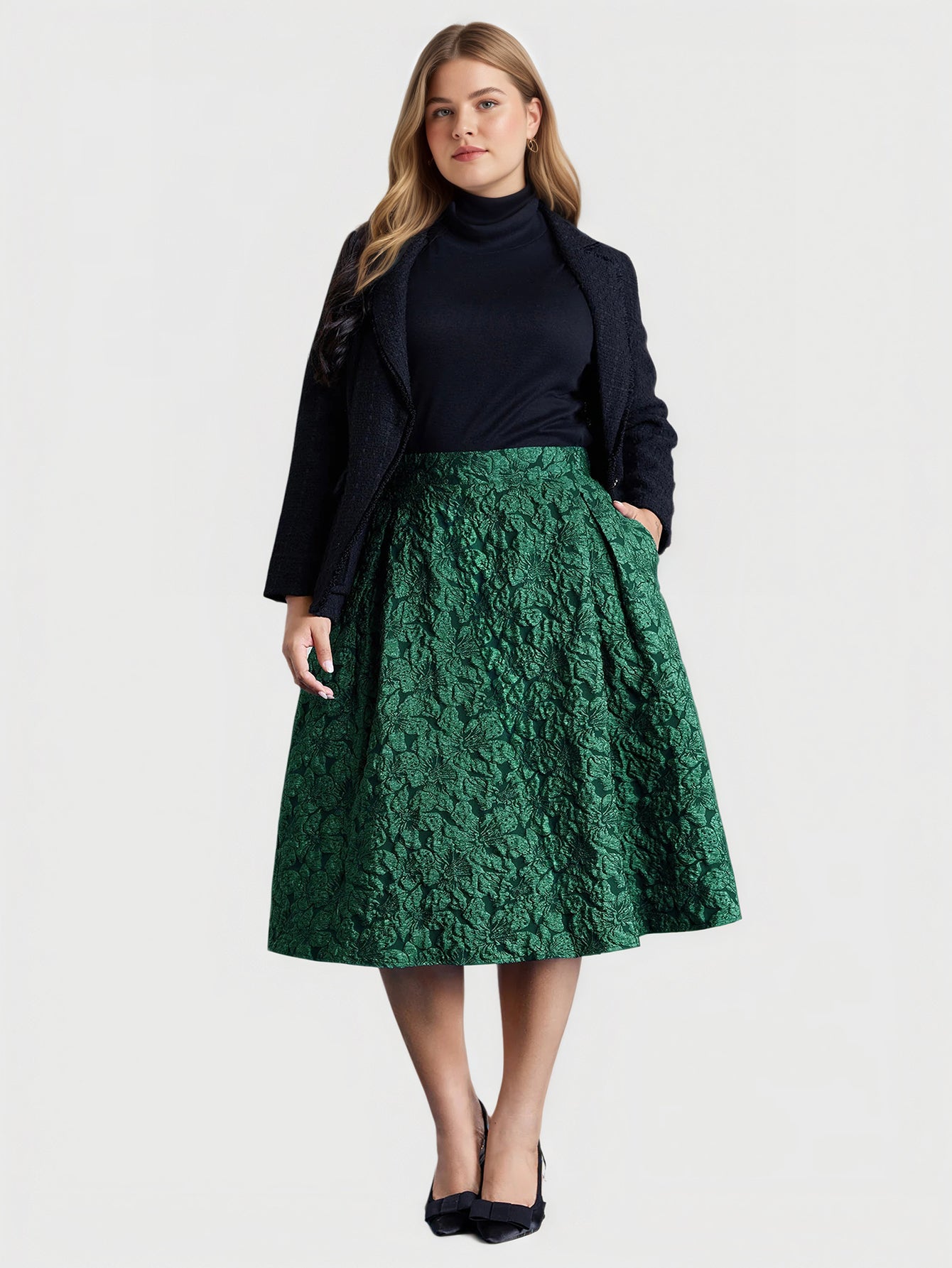Elevate your wardrobe with the Yeese Plus Size Women's Textured Fabric Skirt. Crafted from high-quality polyester, this knee-length skirt features a flared fit that flatters your figure and moves with grace, offering both comfort and elegance.