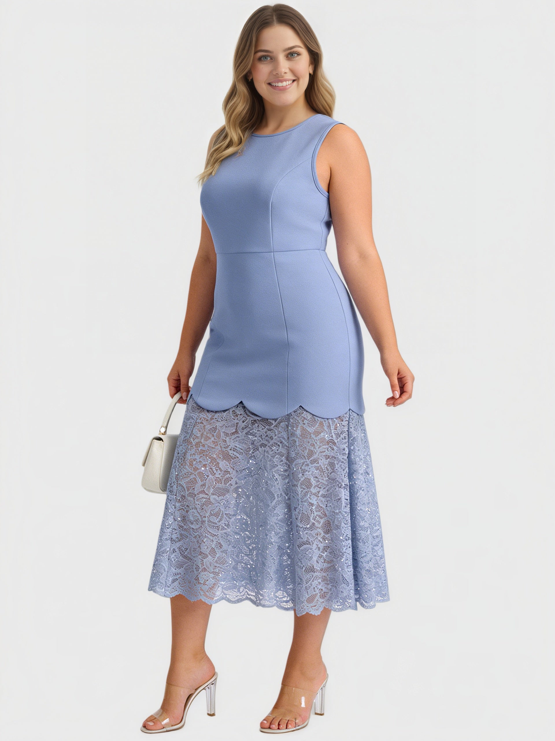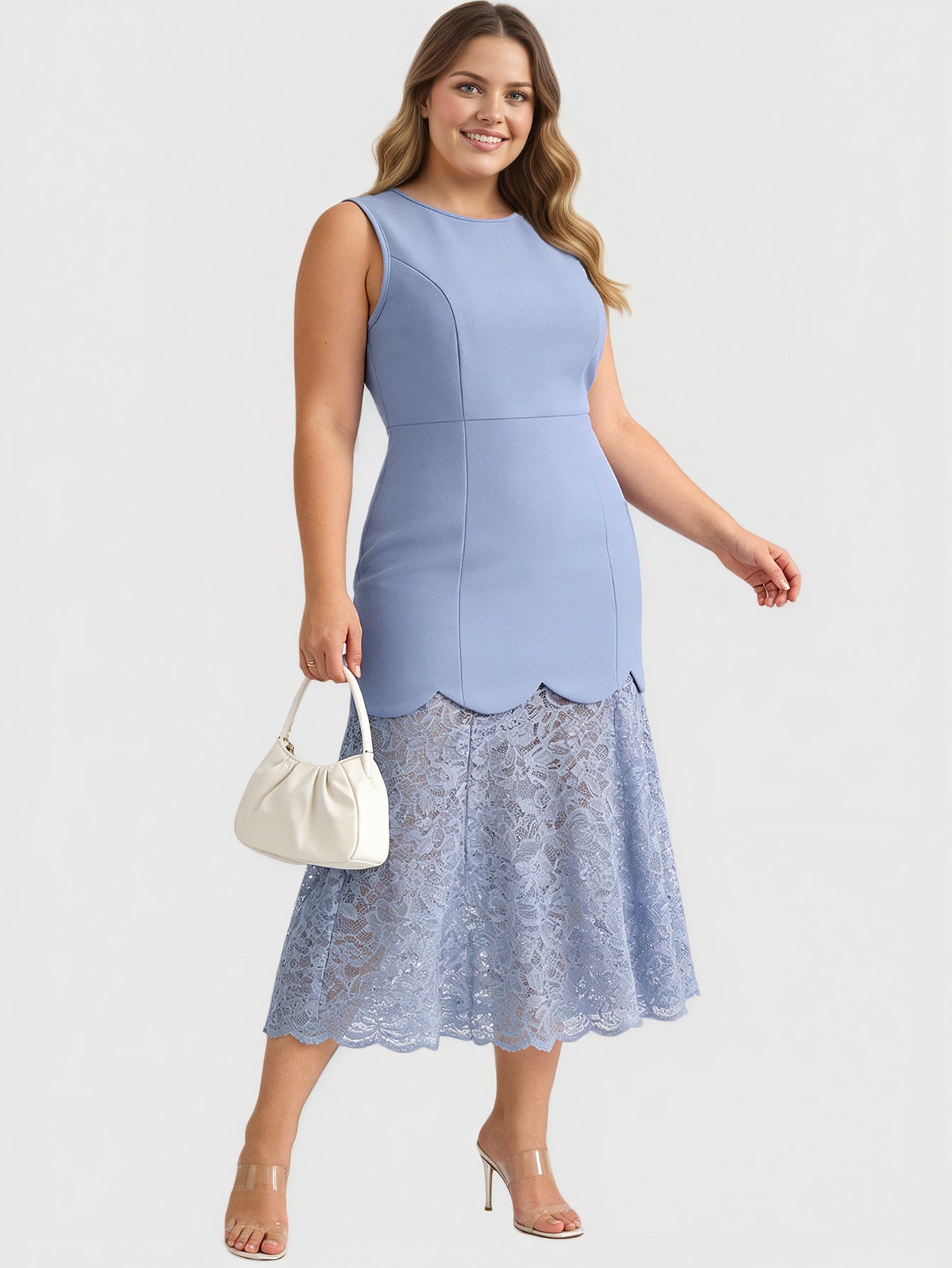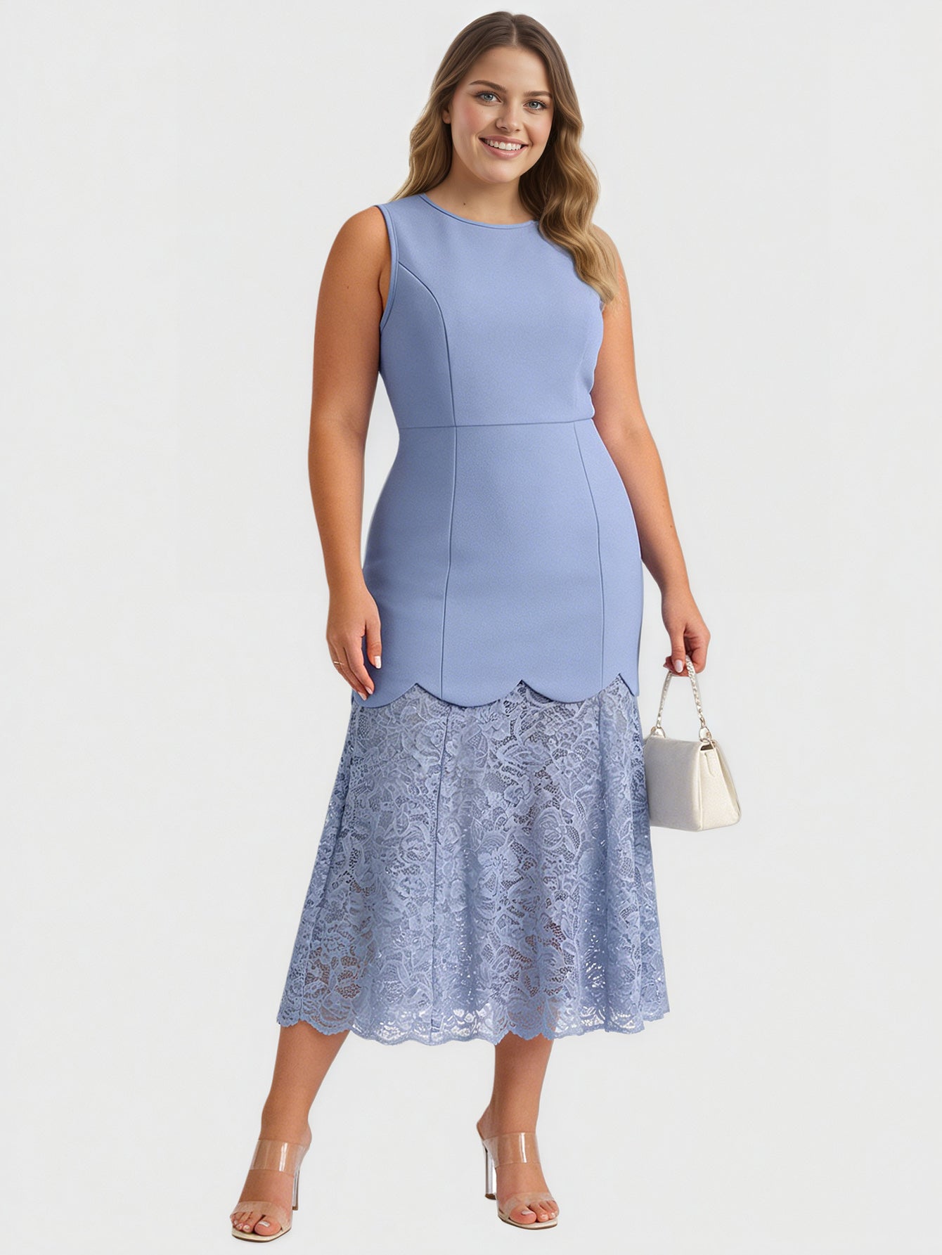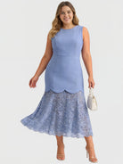 Yeese Plus Size Spitzen-Patchwork-Damenkleid