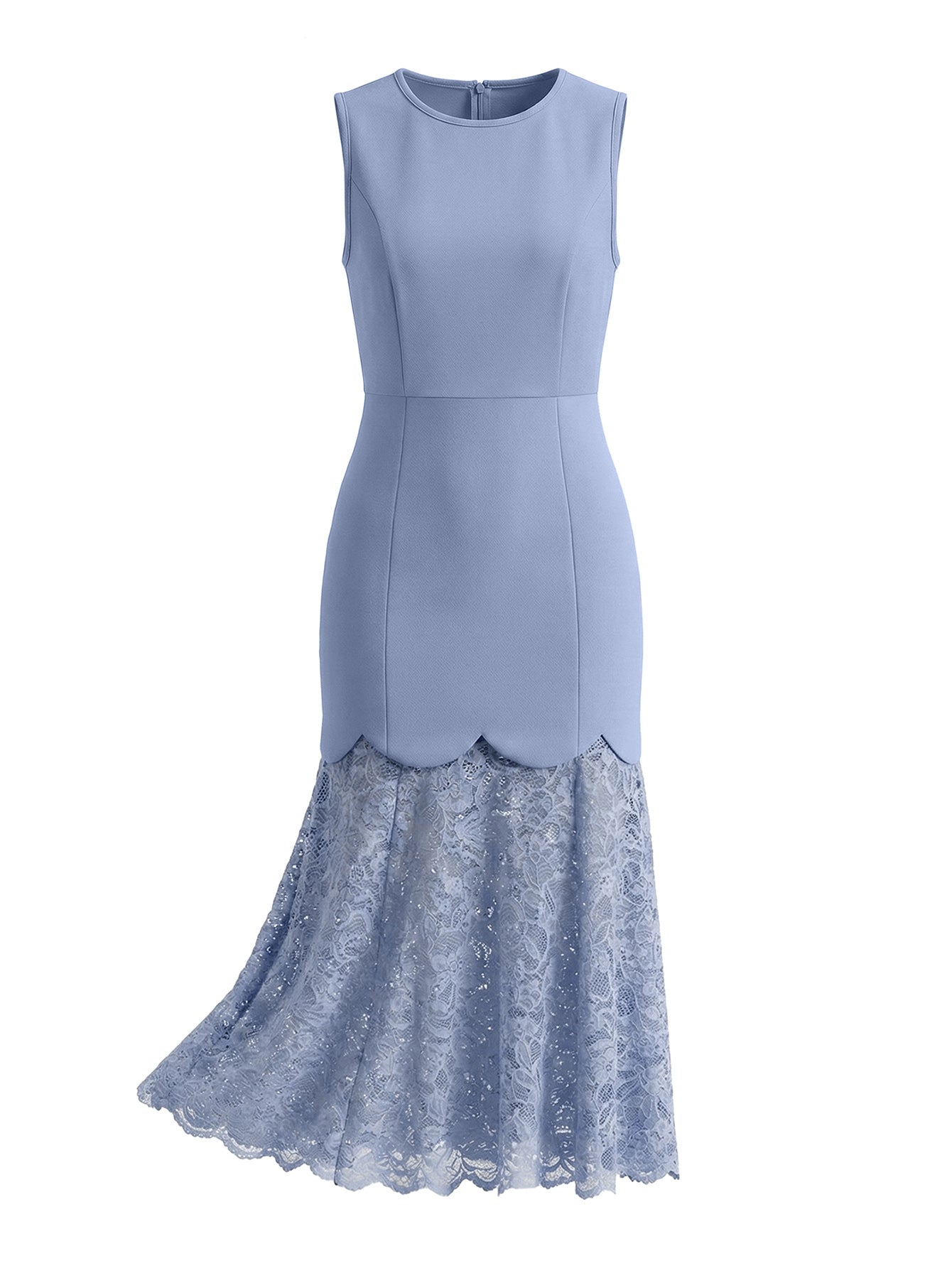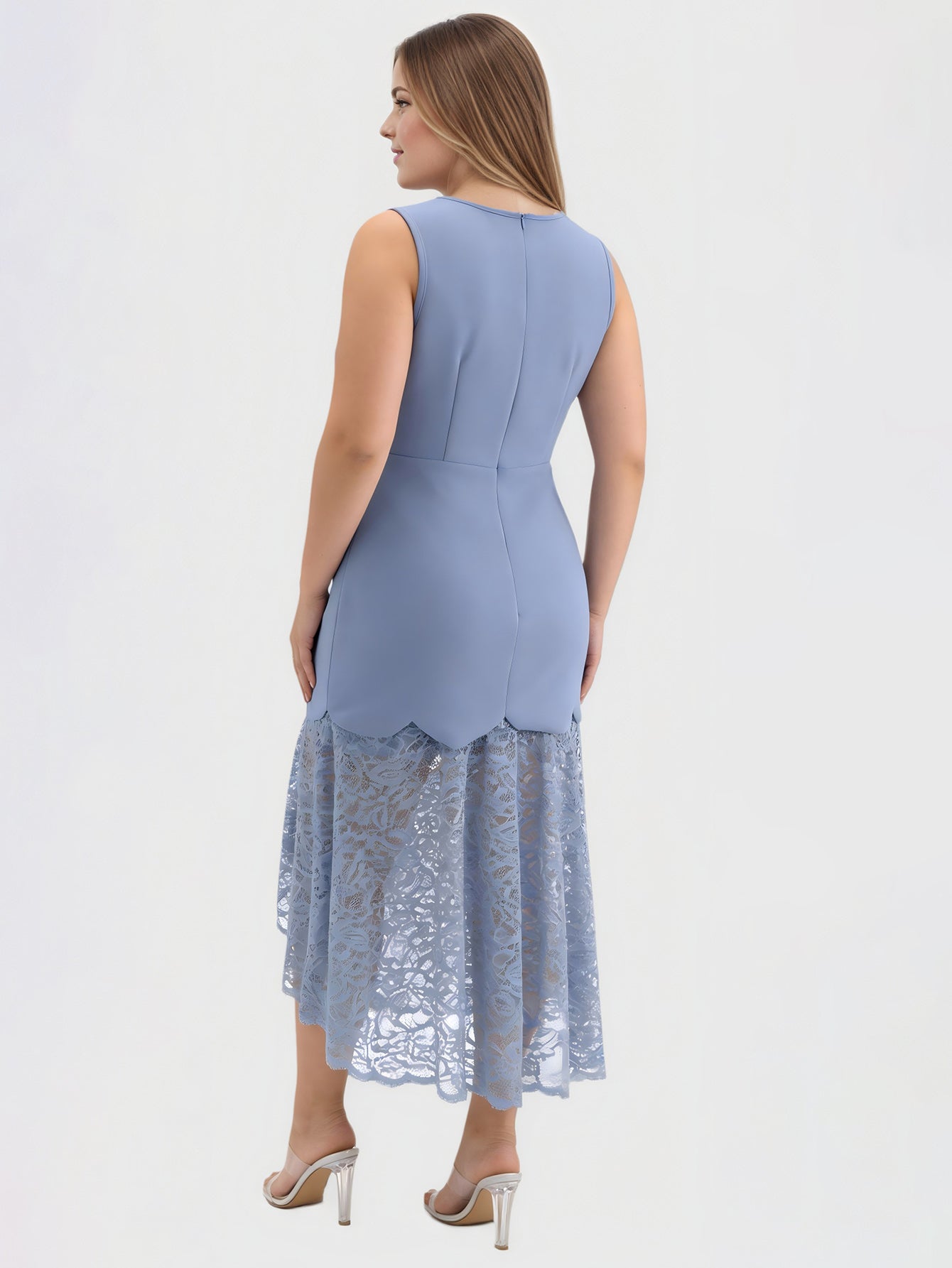 Dieses elegante Midikleid vereint blickdichten Stoff mit aufwendigen Spitzenapplikationen zu einem raffinierten Look. Es eignet sich perfekt für Cocktailpartys oder formelle Anlässe und bietet sowohl Komfort als auch Stil.