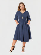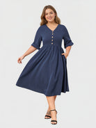 Yeese Plus-Size Damenkleid mit Knopfleiste und Taschen
