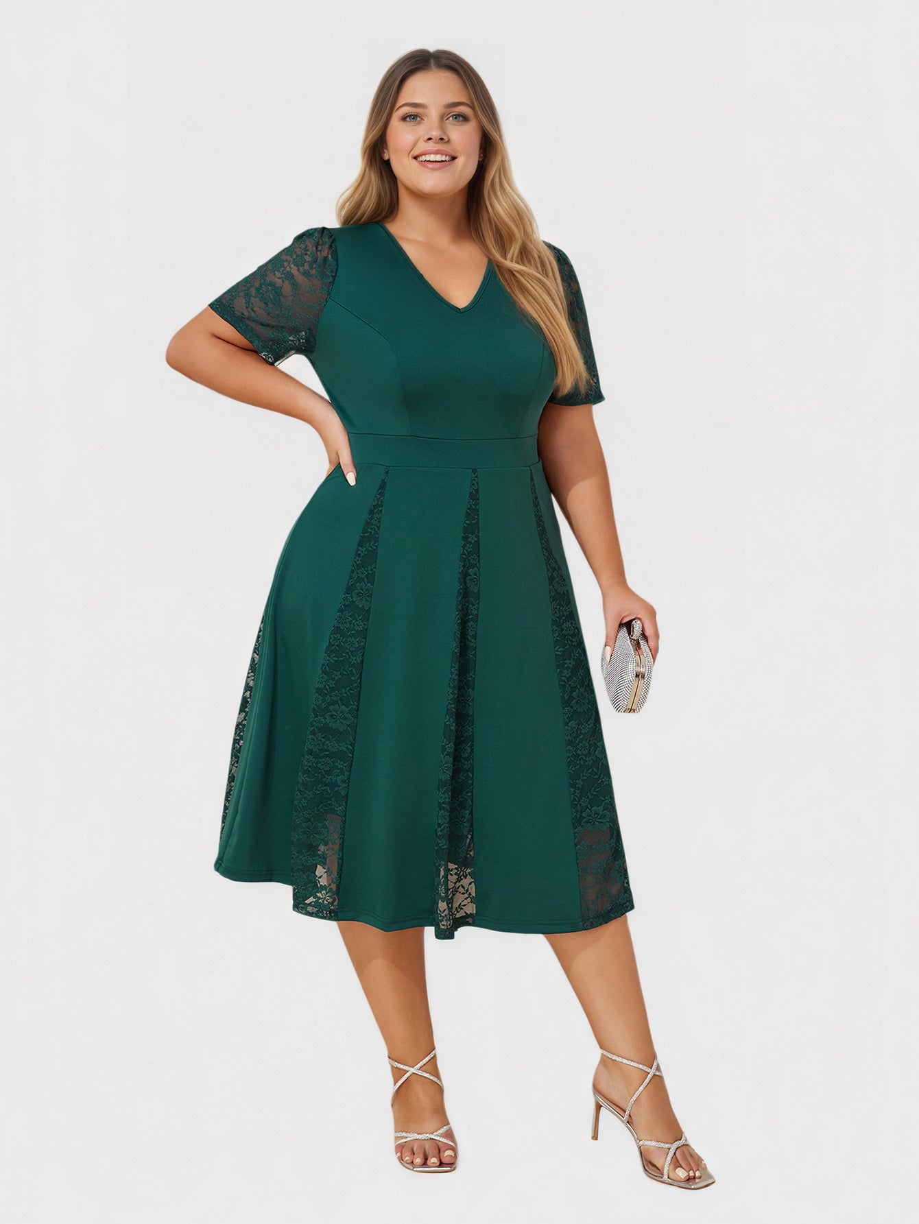 Yeese Plus-Size Damenkleid mit Spitzeneinsätzen