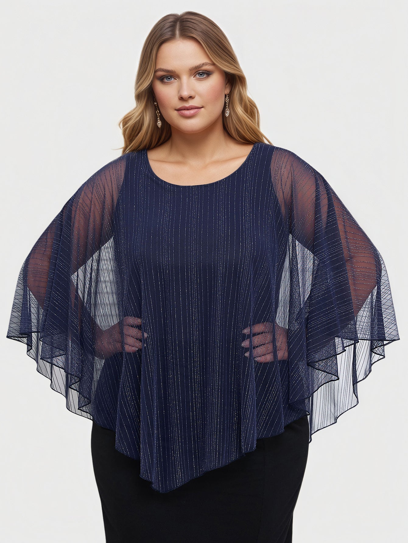 Yeese Plus-Size Damen-Top im Schal-Stil aus silbernem Netzgewebe