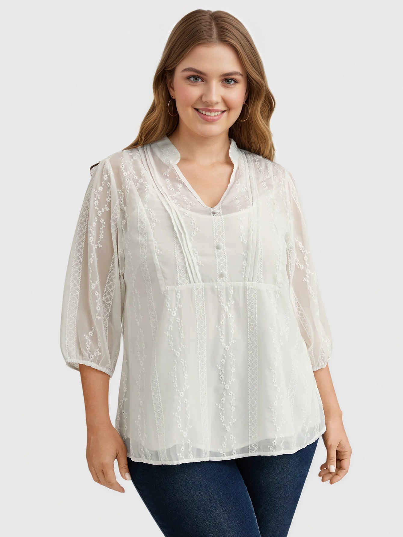 Yeese Plus Size Women's Chiffon Embroidered Shirt