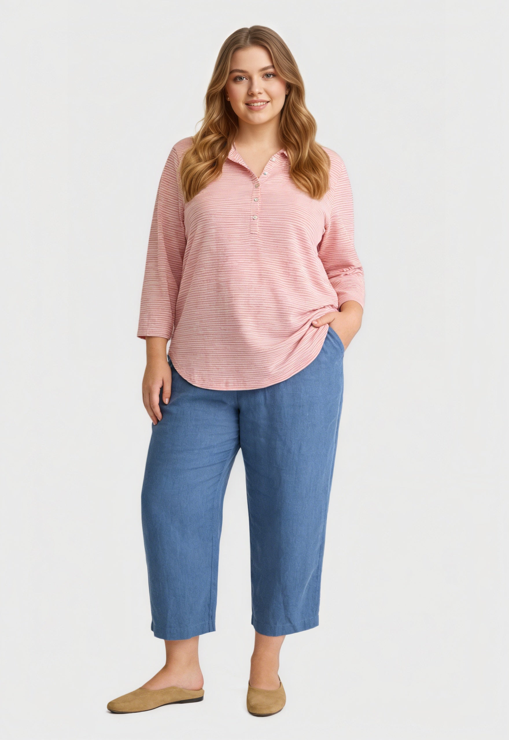 Yeese Leinenhemd in Übergröße für Damen mit Streifen