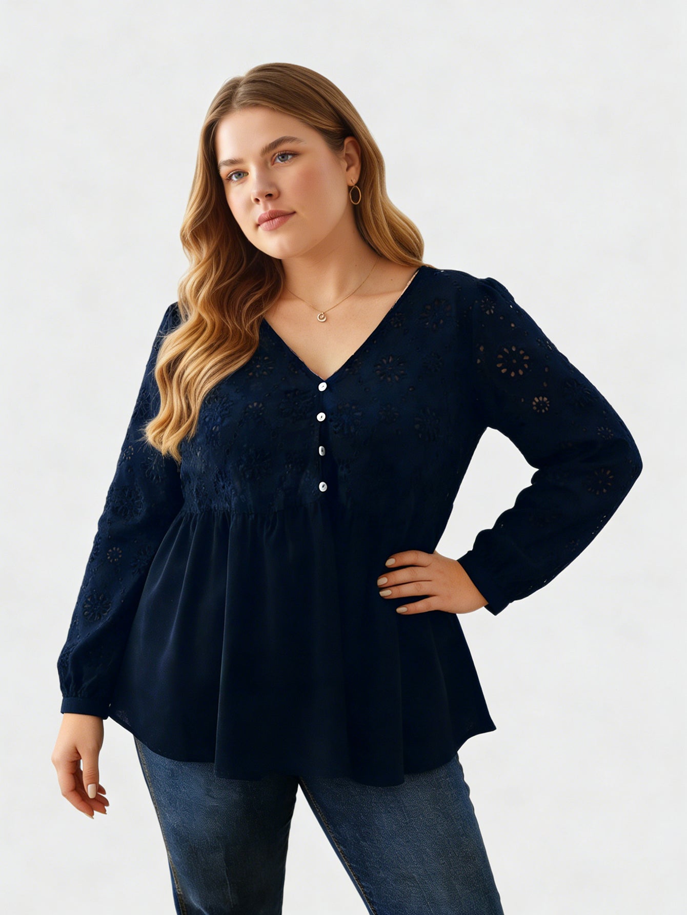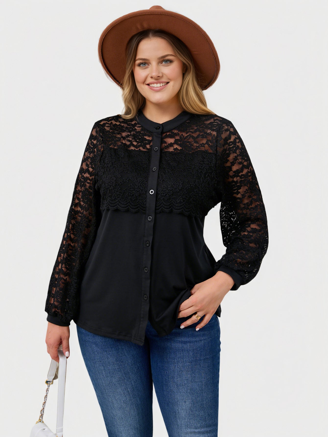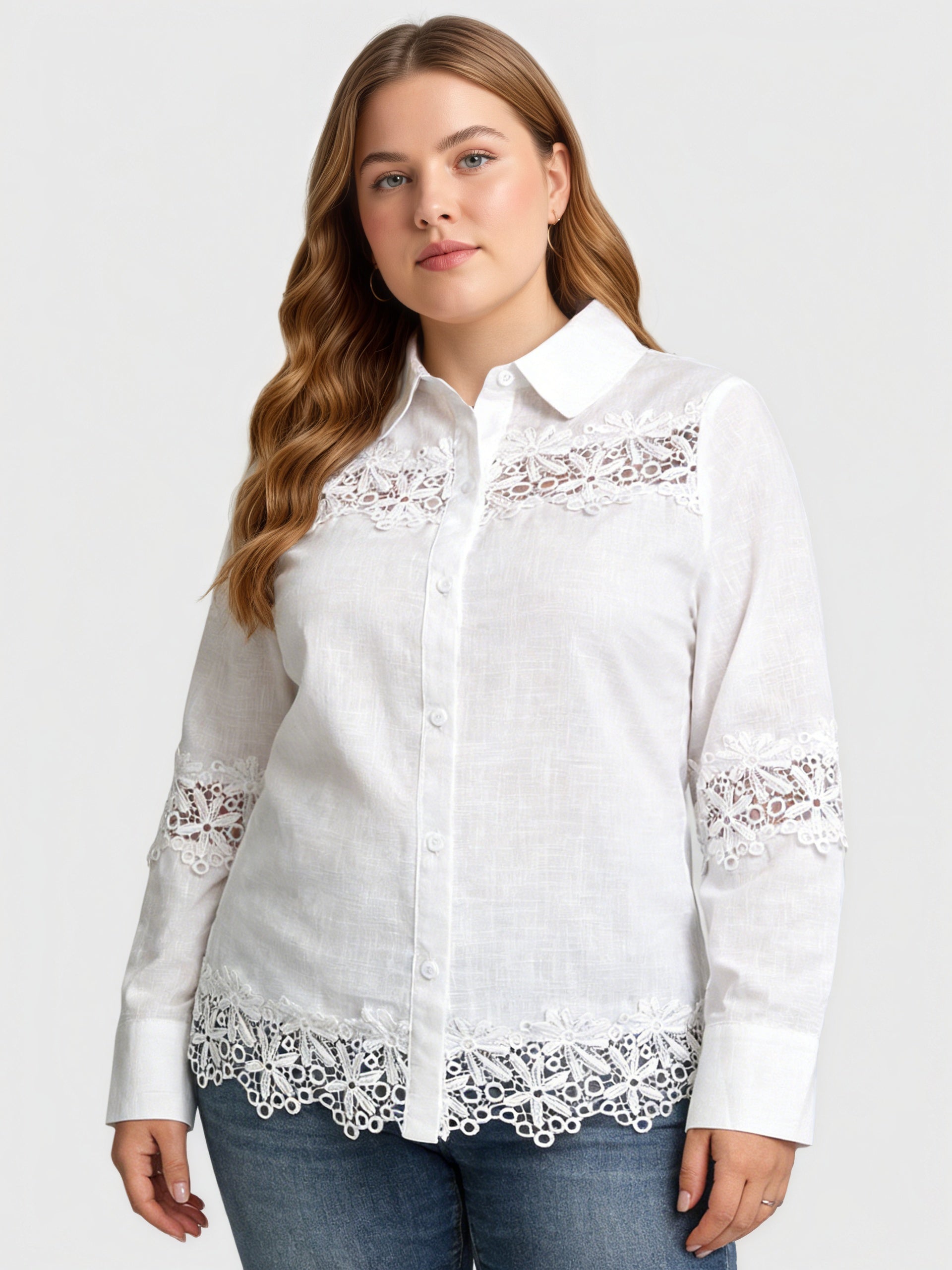 Yeese Damenhemd in Übergröße mit Spitzendetails