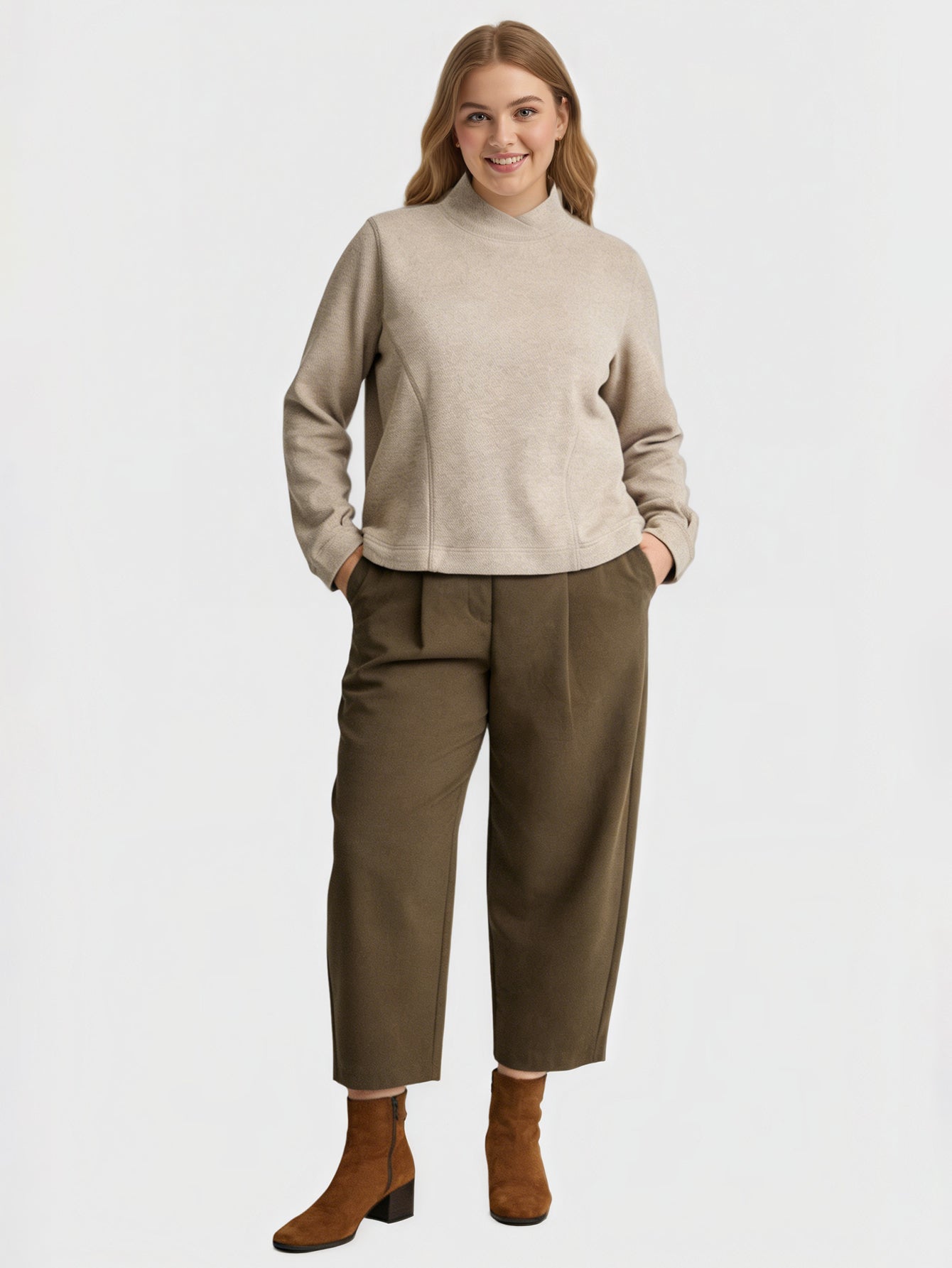 Yeese Plus Size Damen-Wolloberteil mit Stehkragen