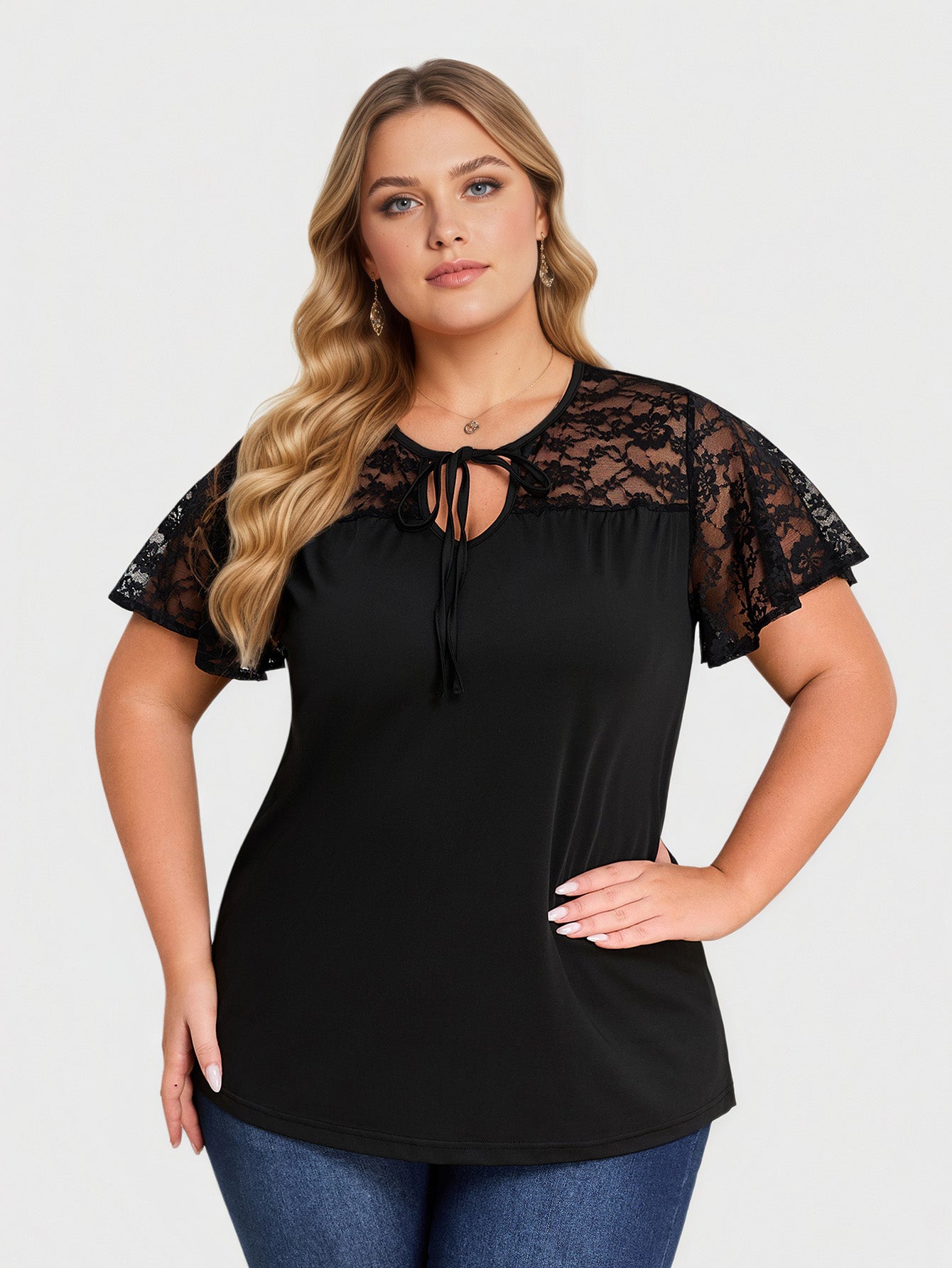 Yeese Damenoberteil in Übergröße mit Spitze und Schleifendetails