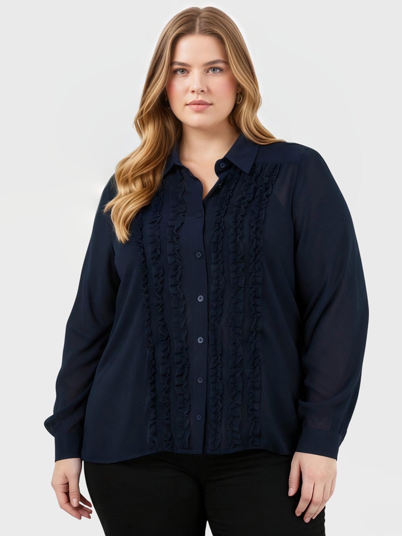 Yeese Damenbluse in Übergröße aus einfarbigem, transparentem Chiffon mit Rüschen und langen Ärmeln