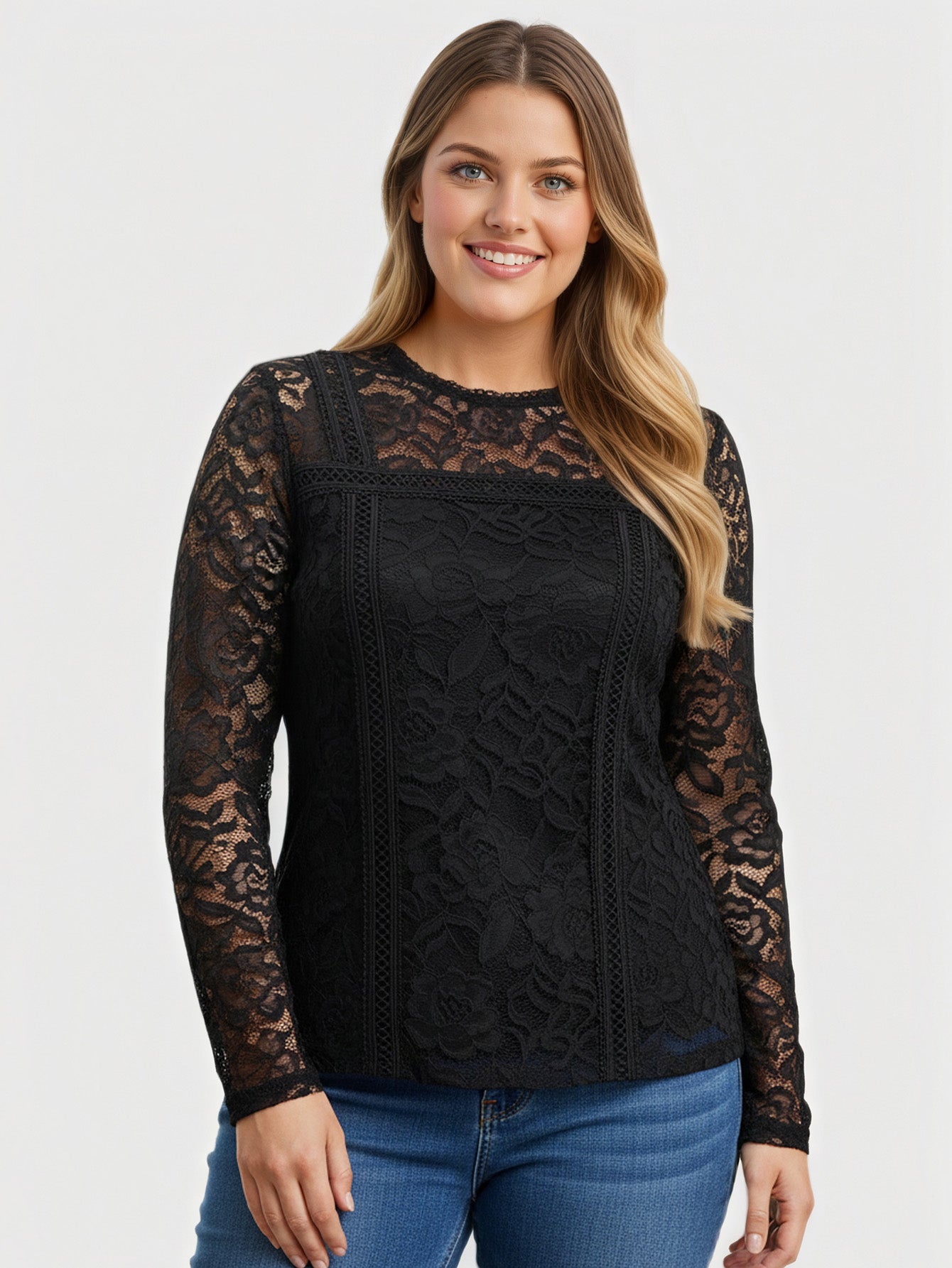 Yeese Damen-Spitzenoberteil in Übergröße, vielseitig und elegant, langärmlig